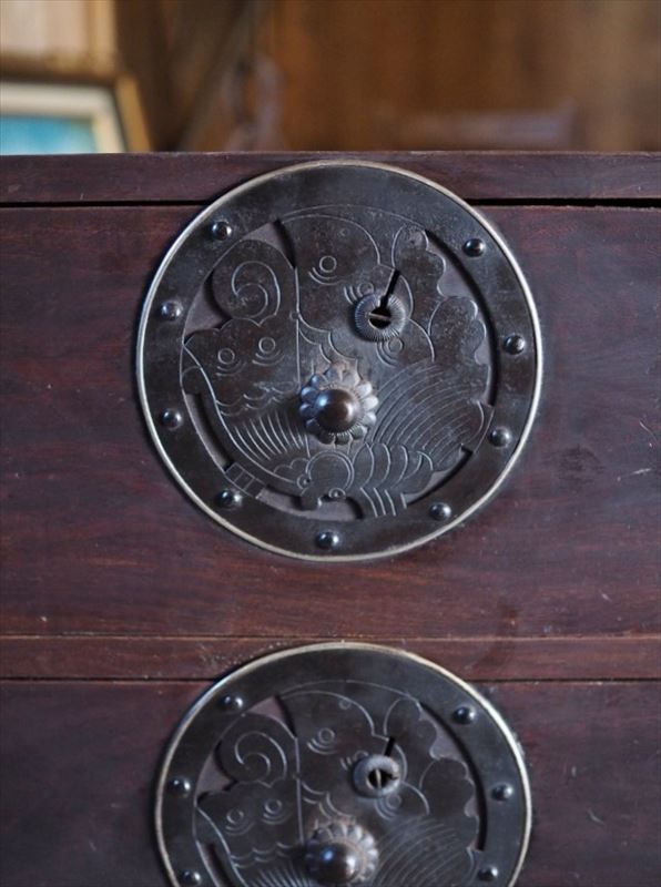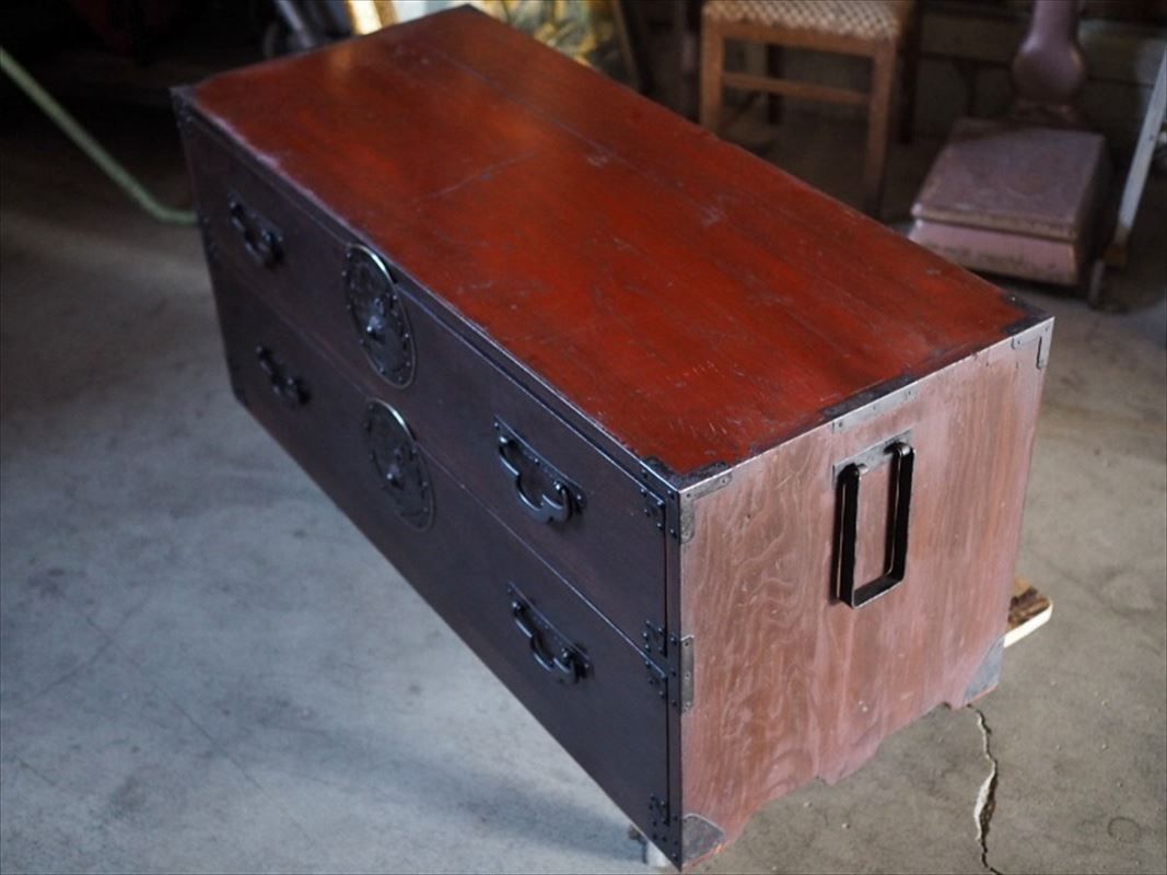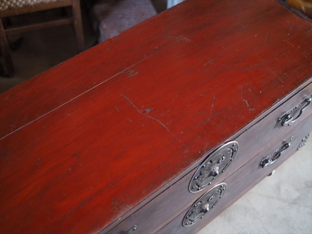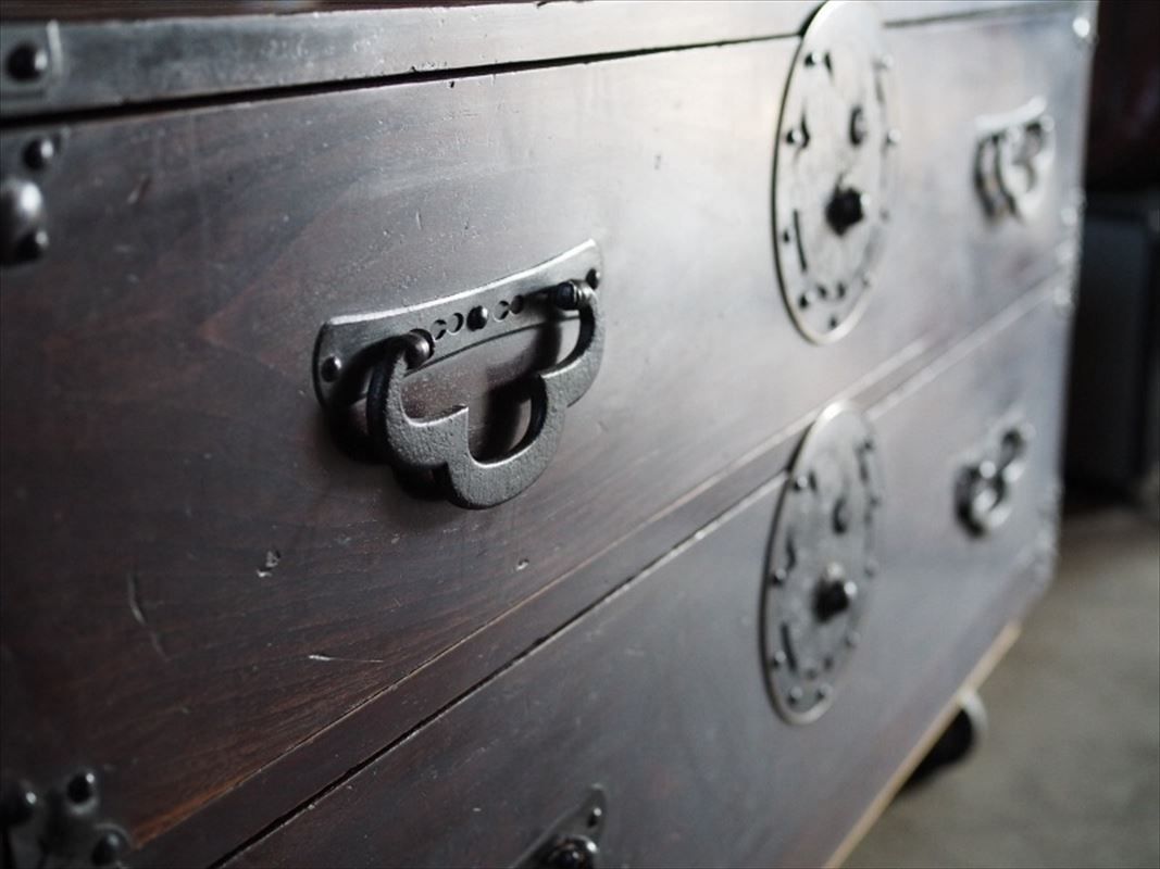 Antique Yonezawa lowboard with swallowtail butterfly hardware from the Meiji to Taisho era. The front is made of chestnut wood and the frame is made of cedar. Can be 新品 as a chest or lowboard. There is no key. Please check the images and video for signs of deterioration. (◎ [Note] ① Items over K size cannot be delivered via "household goods delivery" on Tuesdays. ② Items over 220 and H size cannot be delivered to some remote islands.) If you have any questions, please contact us by phone, LINE, email, or Instagram message. We will answer your questions honestly.(幅)1110mm×(奥)460mm×(高)480mm