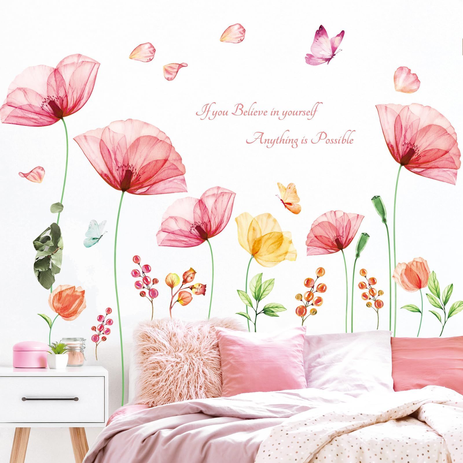ステッカー デコ ウォール 幼稚園 保育園 子供部屋 DIY 用 壁転写 シール X線ライトピンクフラワー ウォールアート シール 男の子 女の子 こども バスルーム デコレーション SG-2206 ビニール 寝室用 ティーン キッズ ウォールペー