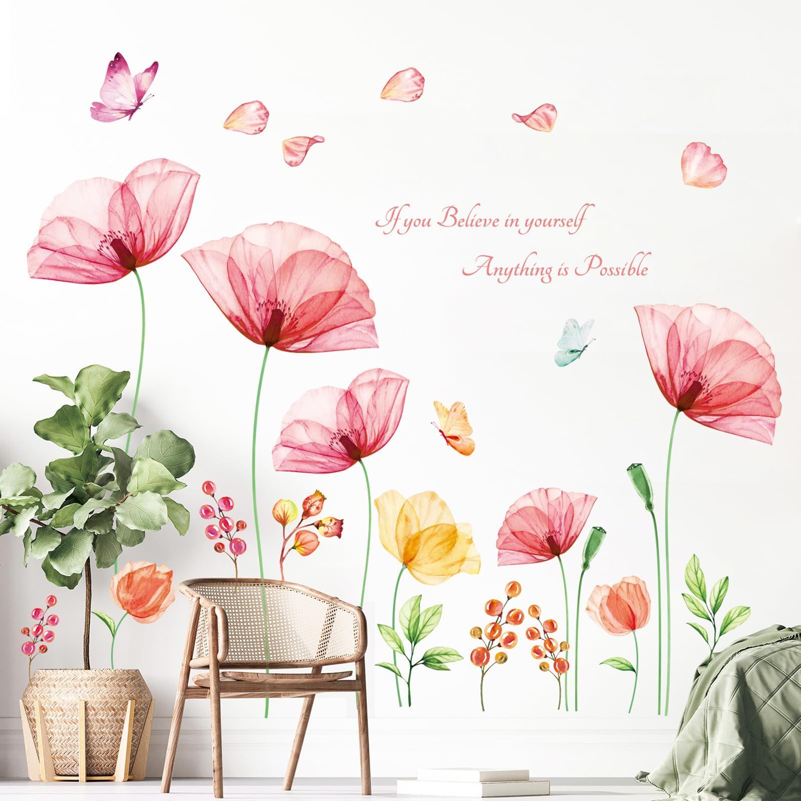 DECOWALL SG-2206 X線ライトピンクフラワー ウォール ステッカー デコ 幼稚園 保育園 子供部屋 DIY 用 壁転写 シール ウォールアート シール 男の子 女の子 こども バスルーム デコレーション ビニール 寝室用 ティーン キッズ ウォールペーパー 壁紙 家具 部屋用 処理 乳児 子 装飾的 リビング キッチン