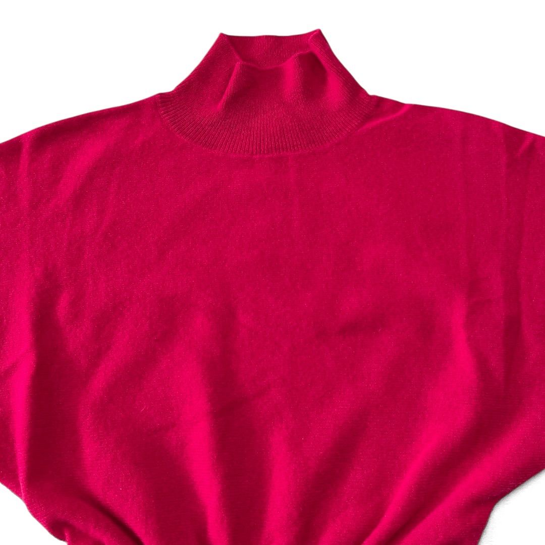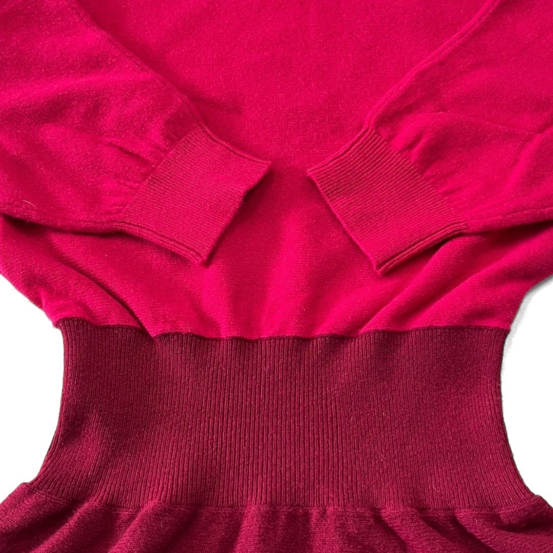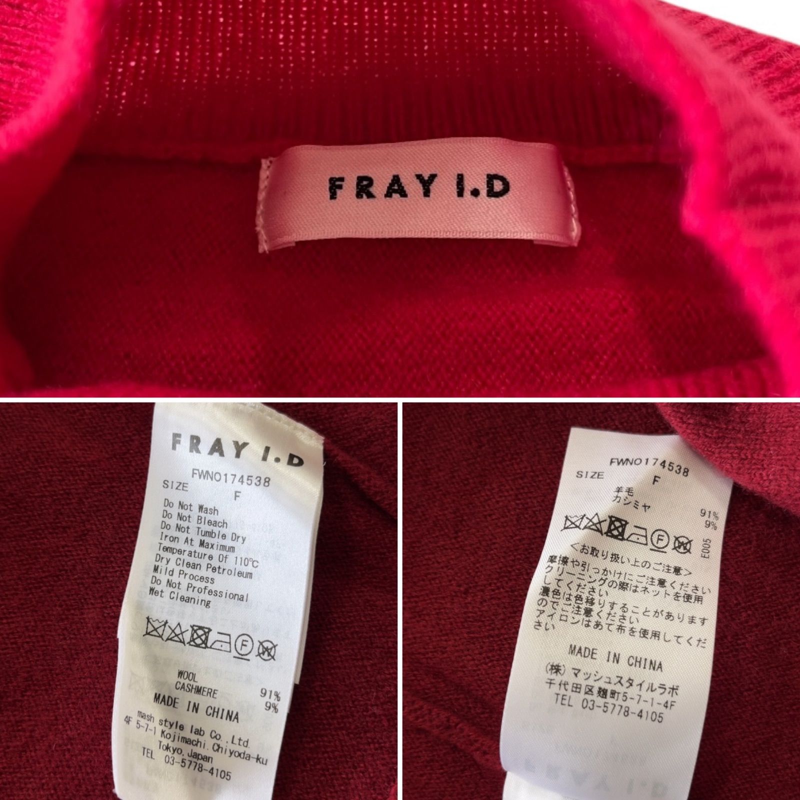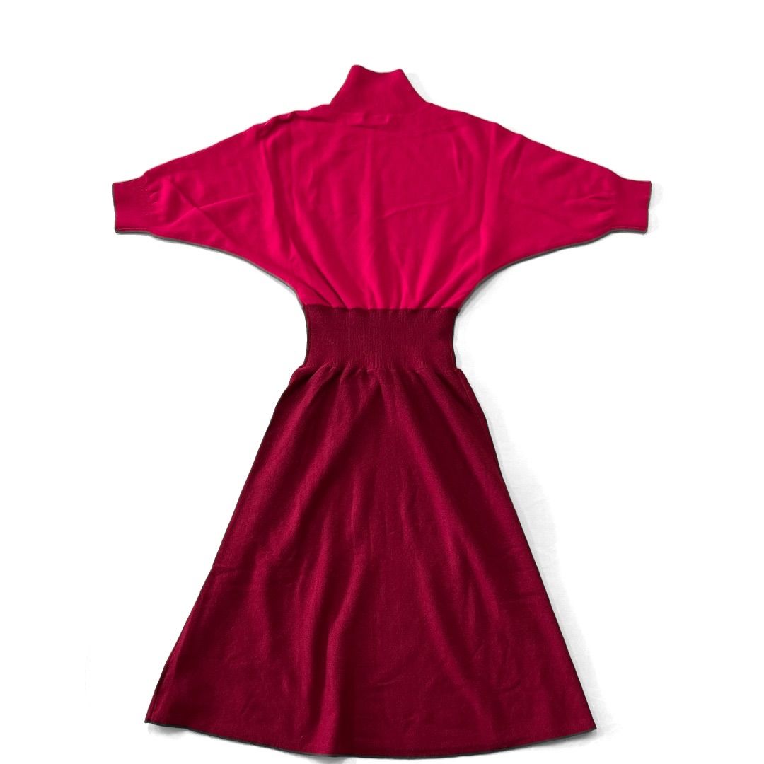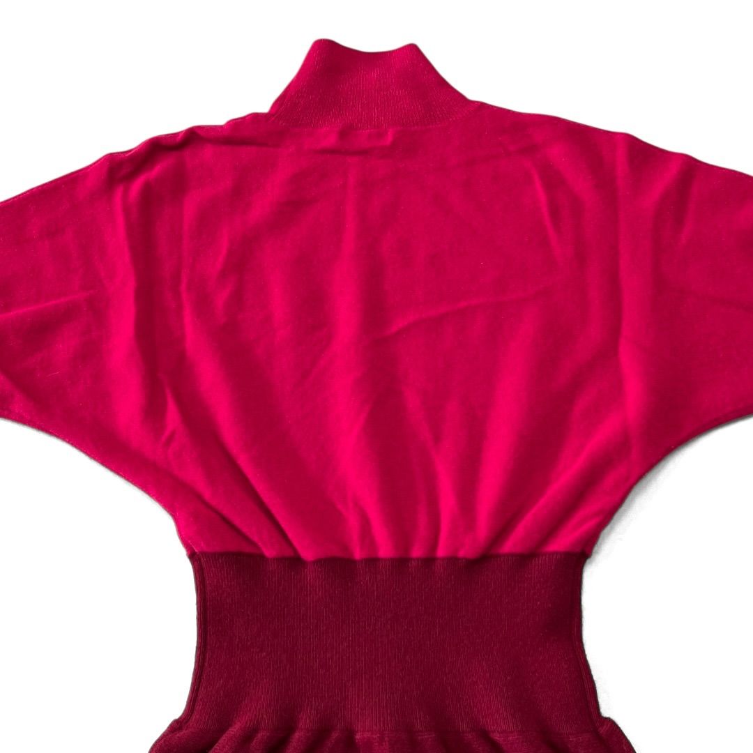FRAY I.D フレイアイディー ウールカシミヤロングワンピース ハイネック Aライン ハーフスリーブ 無地 F バイ ピンク×ワインレッド M83