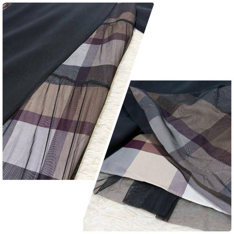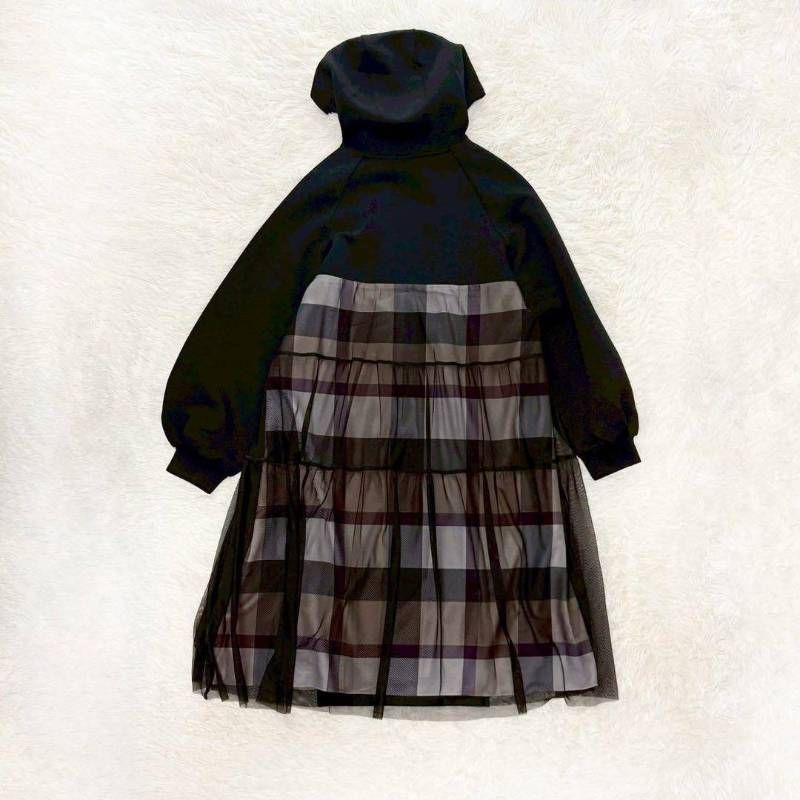 ブルーレーベル クレストブリッジ バック チュール ポンチ ドレス チェック 黒 ブラック 36 ワンピース ひざ下 フード