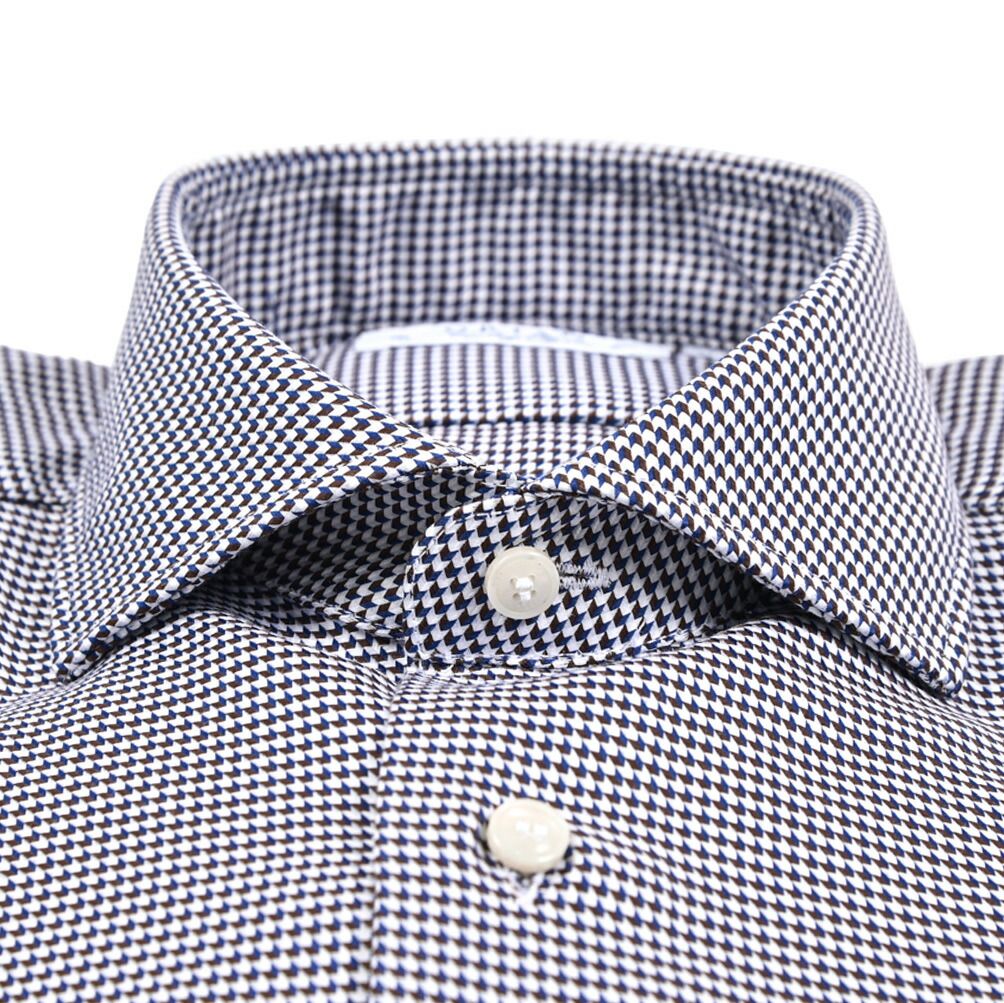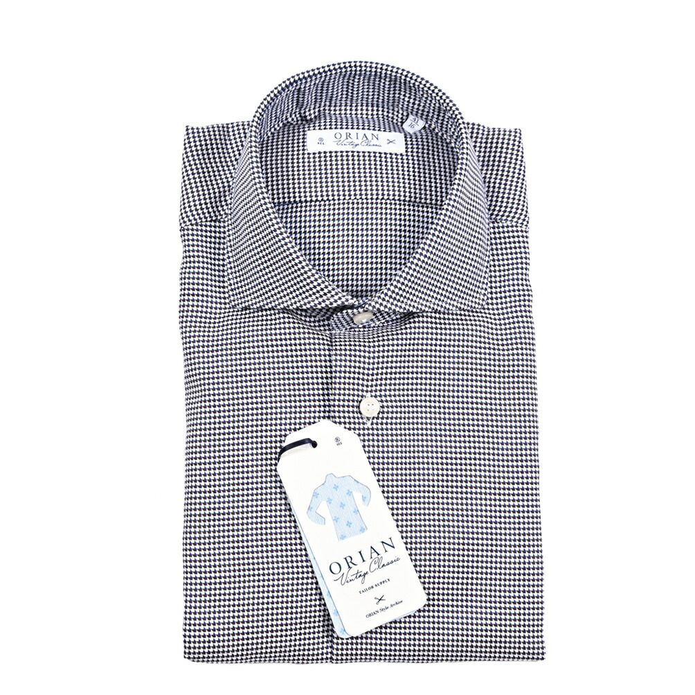 「着る人の個性を際立たせるシャツ」 を理想とし、シャツ自体の主張や過度な装飾を排したエレガントな気を纏うオリアンのドレスシャツ。伝統的なサルトリアの職人によるハンドメイド技術と最高水準のマシンメイド技術が見事に融合した、もう一枚の皮膚のように肌になじむ着心地。