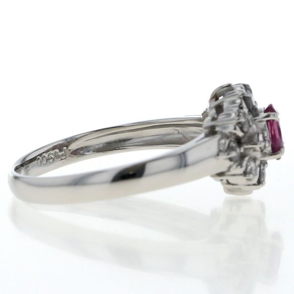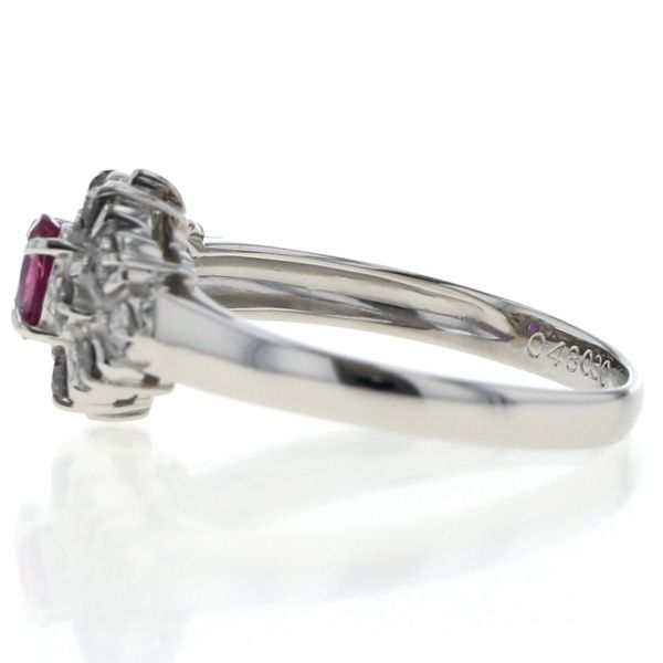Pt900 プラチナ リング ルビー 0.48ct ダイヤモンド 0.30ct オーバル フラワー 花 取り巻き 指輪 12.5号 仕上済 zz