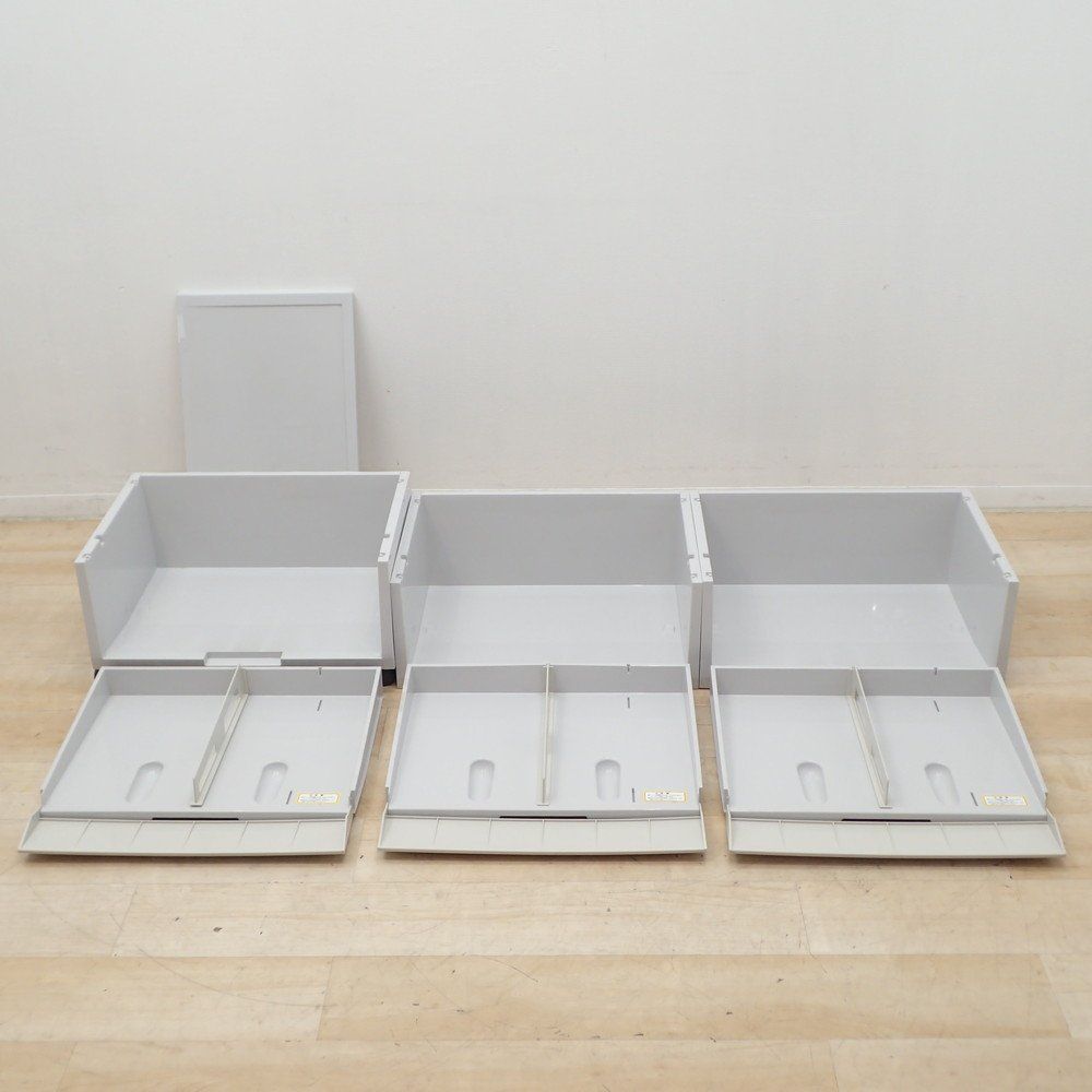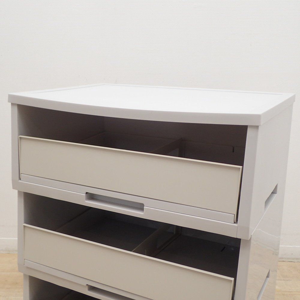 商品説明 紙類の分類収納に活躍できる3段ボックス。