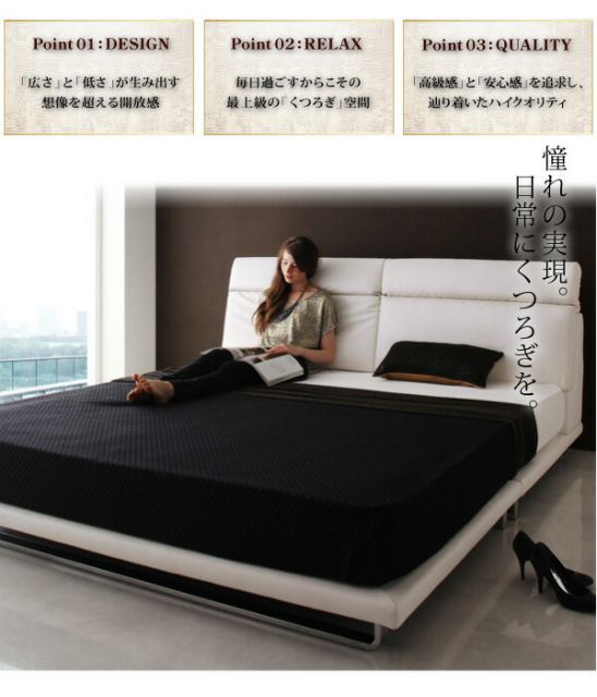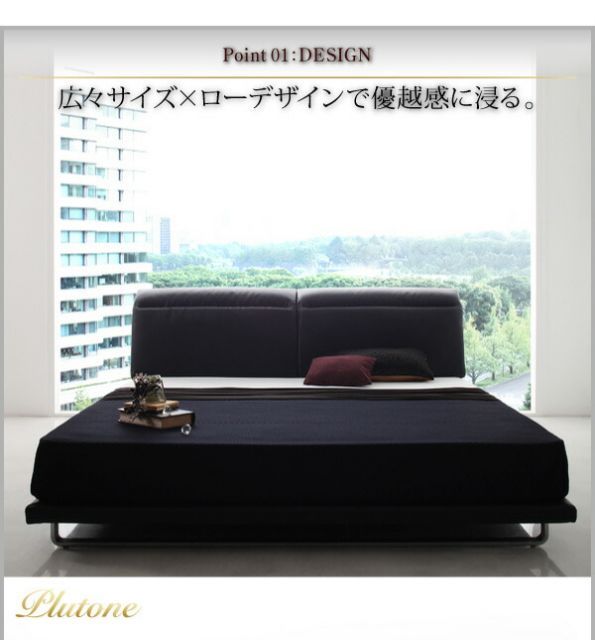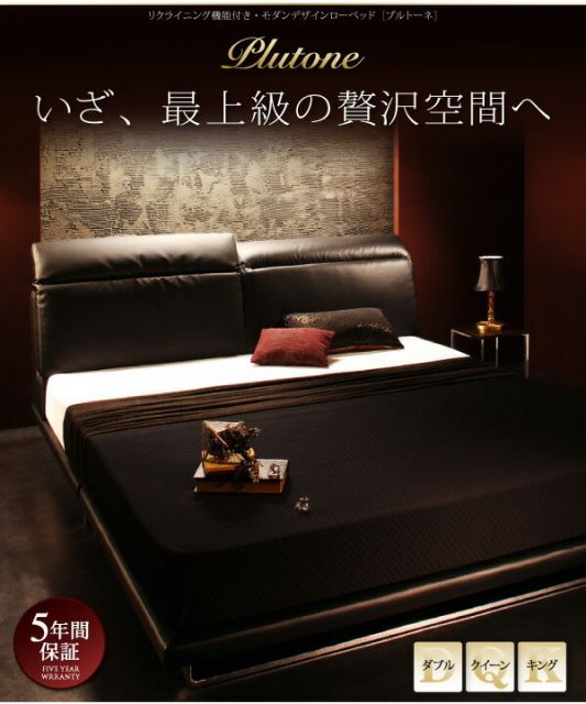 クイーンベッド リクライニング機能付き ローベッド Plutone プルトーネ_クイーン_フレームのみ ヘッドボード フロアベッド モダンデザイン クイーンサイズ ベット レザーベッド PUレザー ハイバック ロータ