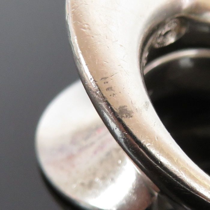 シルバーの性質上、経年変化による変色が少々ございますが、磨き等のお手入れをしていただくと艶を保つことができます。