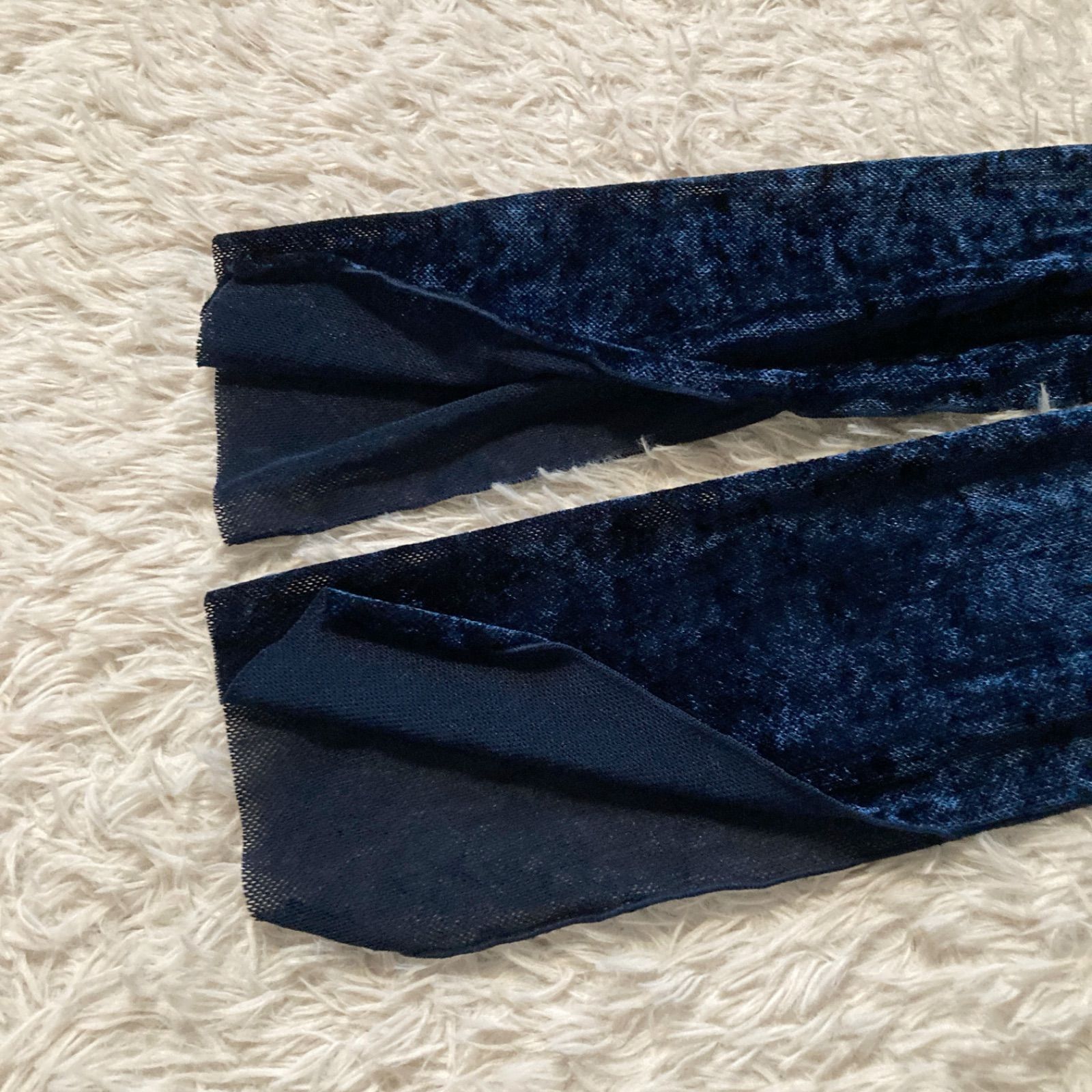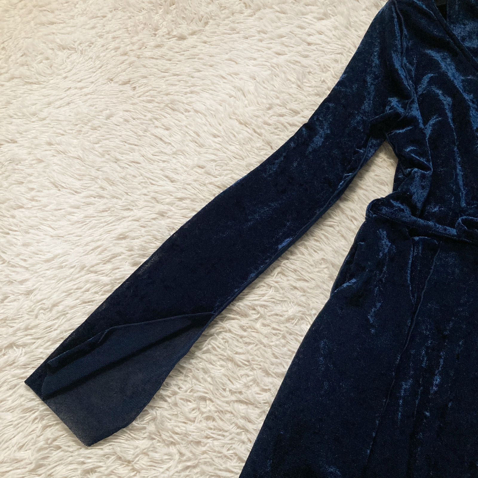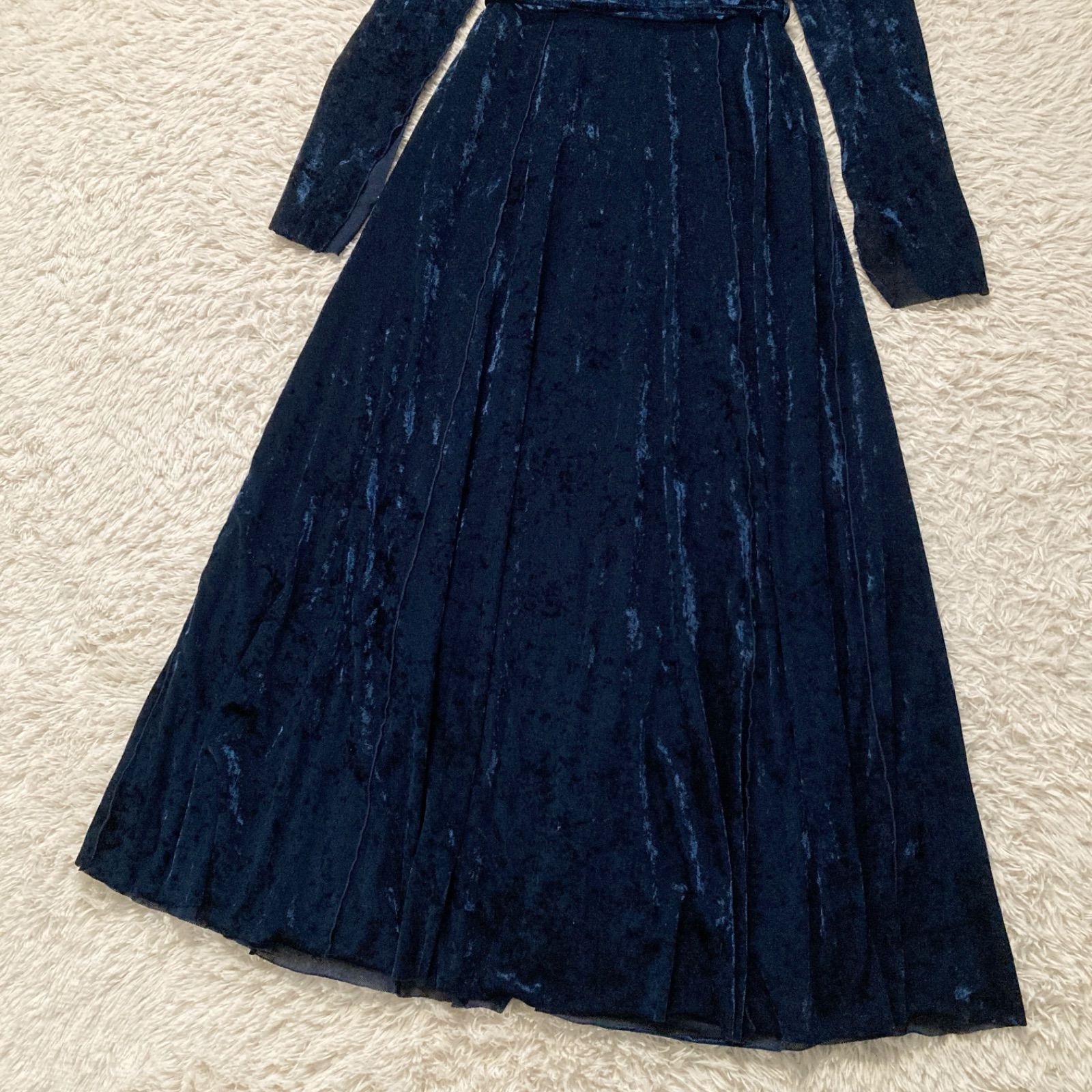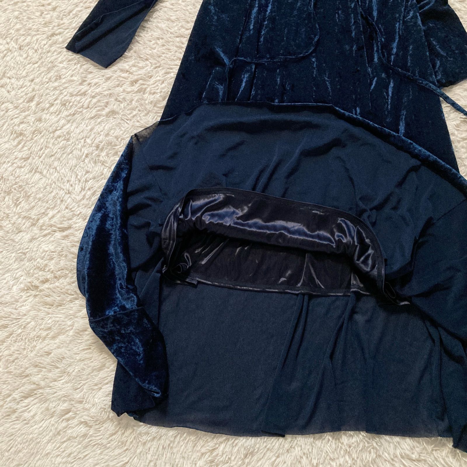 美品 ハレ HARE ベロアチャイナワンピース ロング ベルベット Aライン ネイビー 紺色 レディース フリーサイズ パーティー 結婚式 二次会 披露宴 お呼ばれ ドレス 華やか 高級感 上品 シアー 透け感 希少 レア 人気 完売品