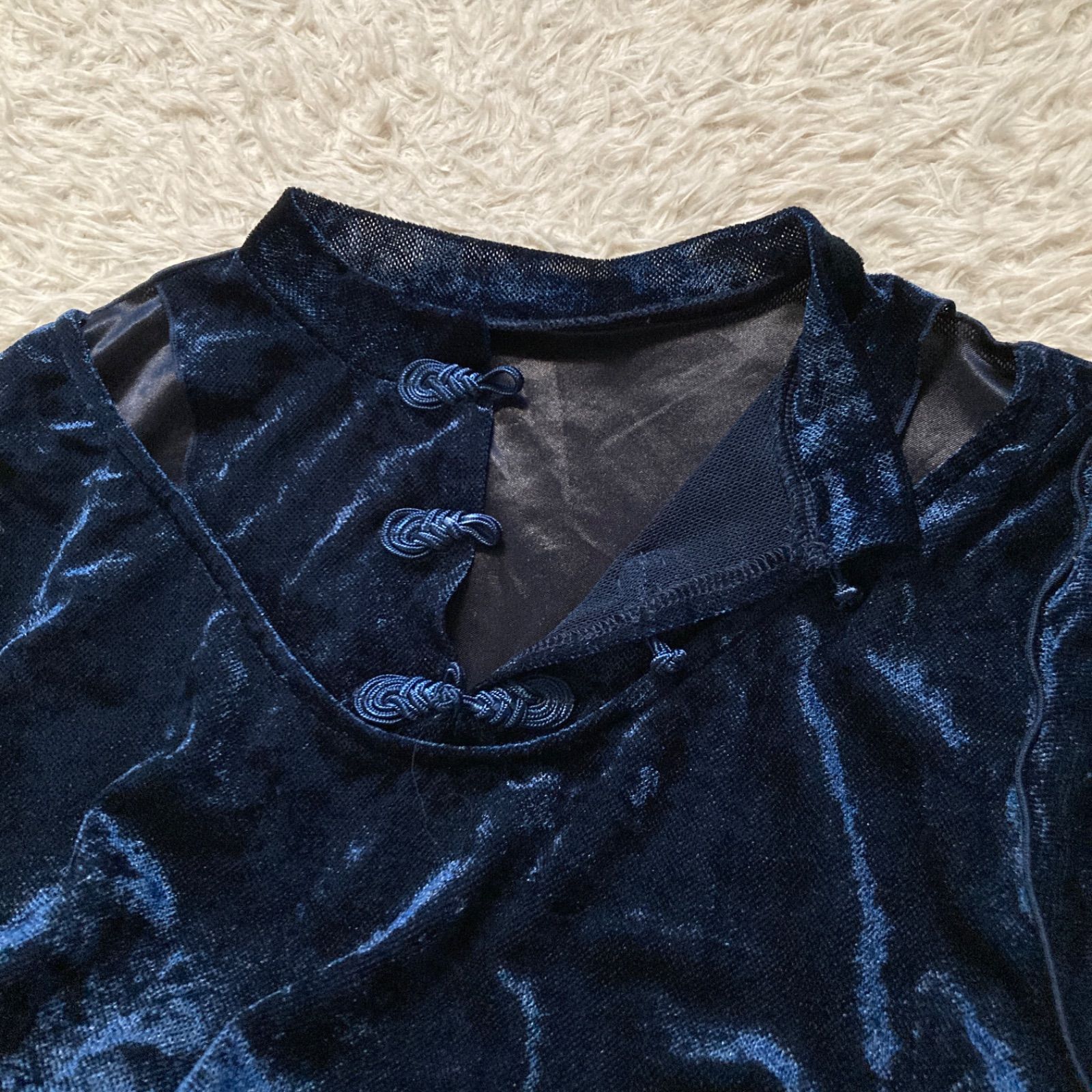 ハレ HARE ベロアチャイナワンピース ロング ベルベット Aライン ネイビー 紺色 レディース フリーサイズ パーティー 結婚式 二次会 披露宴 お呼ばれ ドレス 華やか 感 上品 シアー 透け感 人気 品