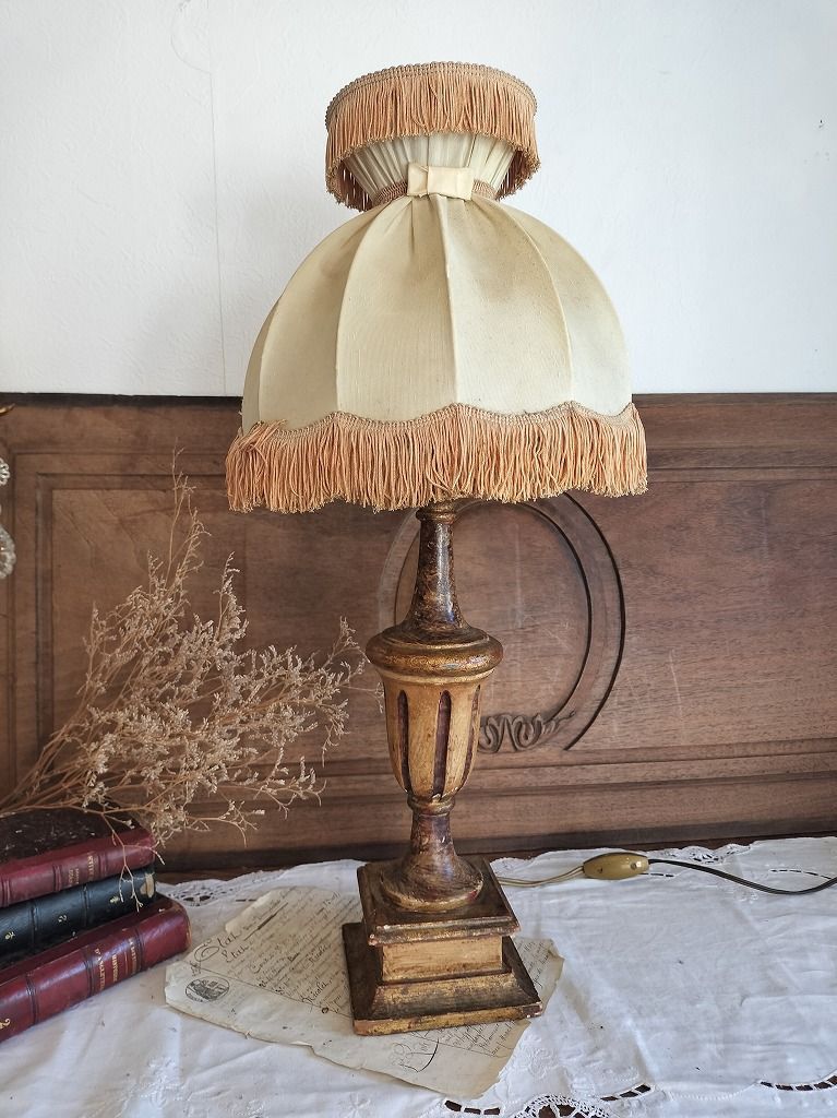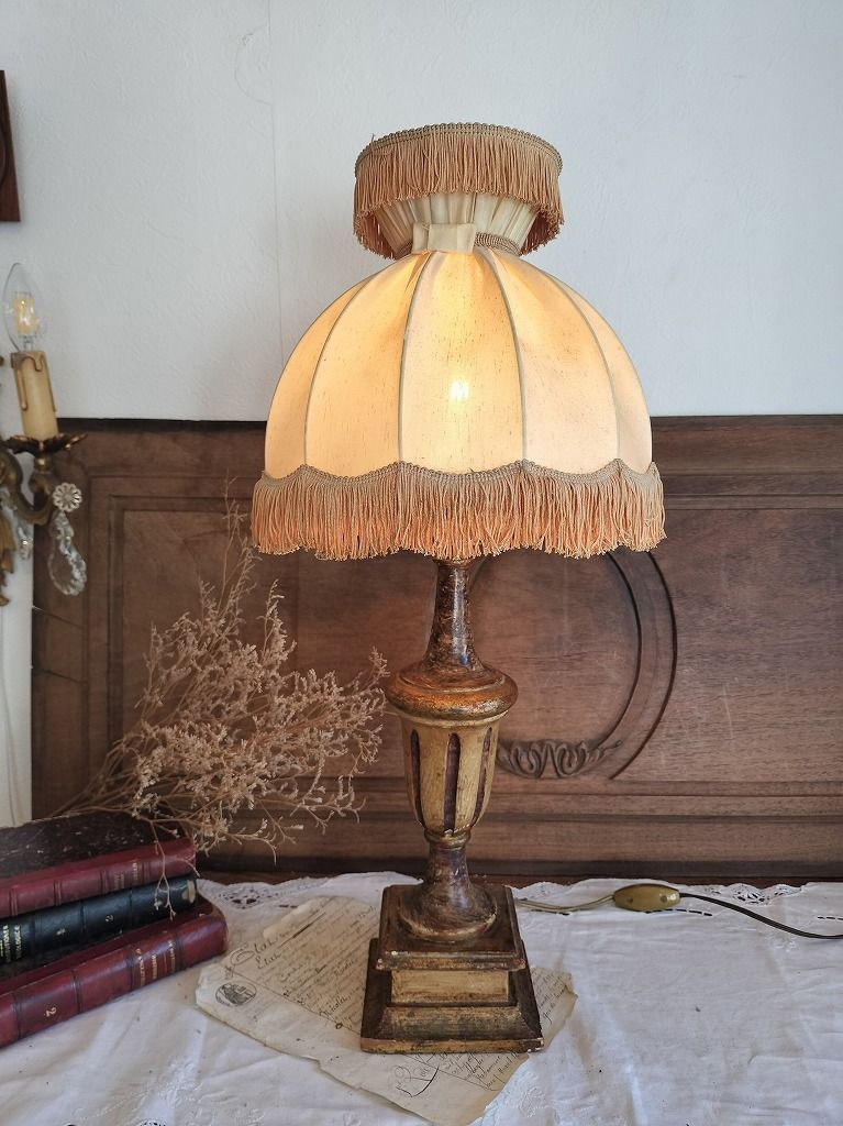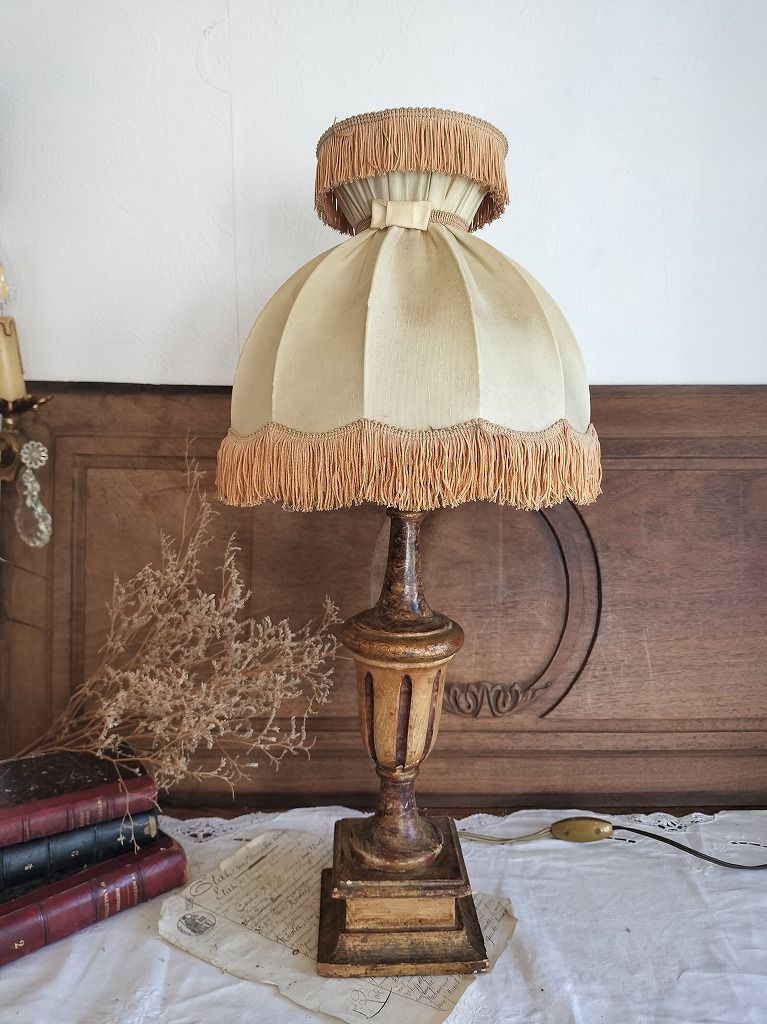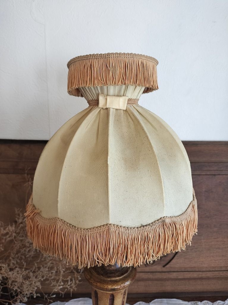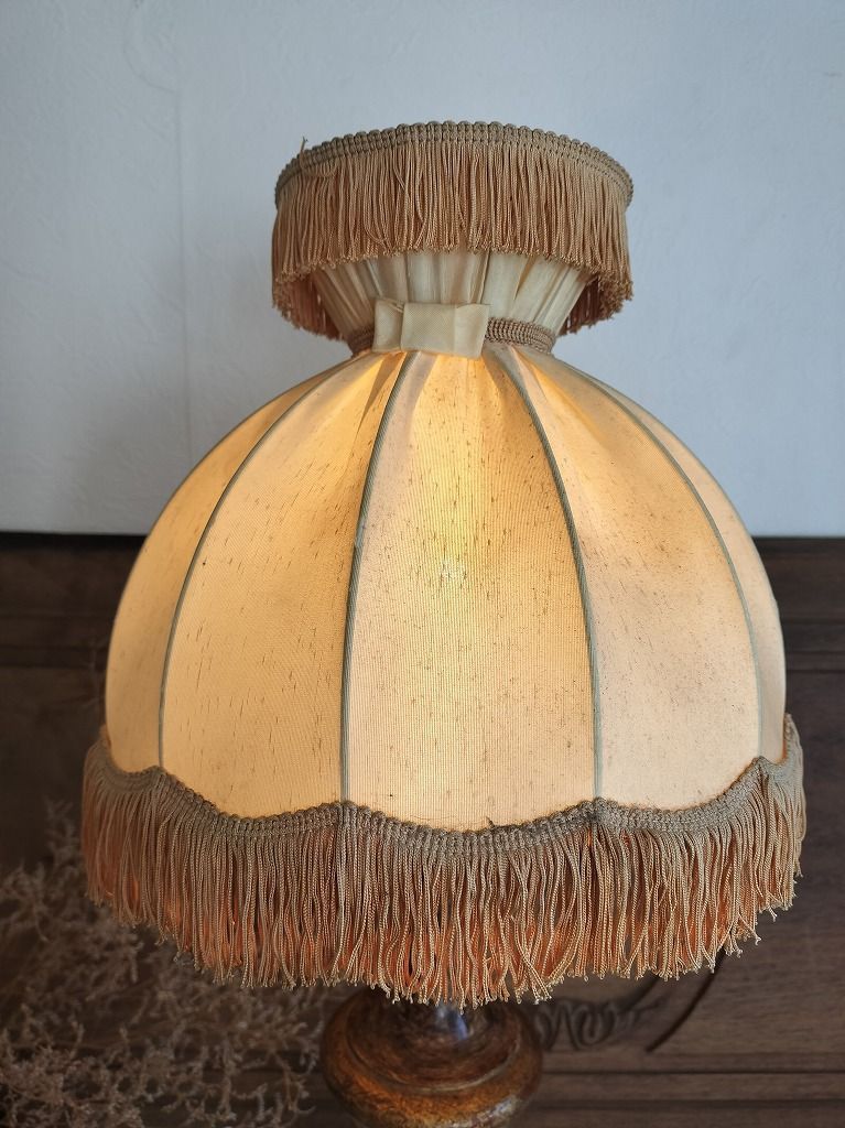 フランス アンティーク 卓上ランプ 木製 大きいい 布シェード つき 付き 照明 ライト です。