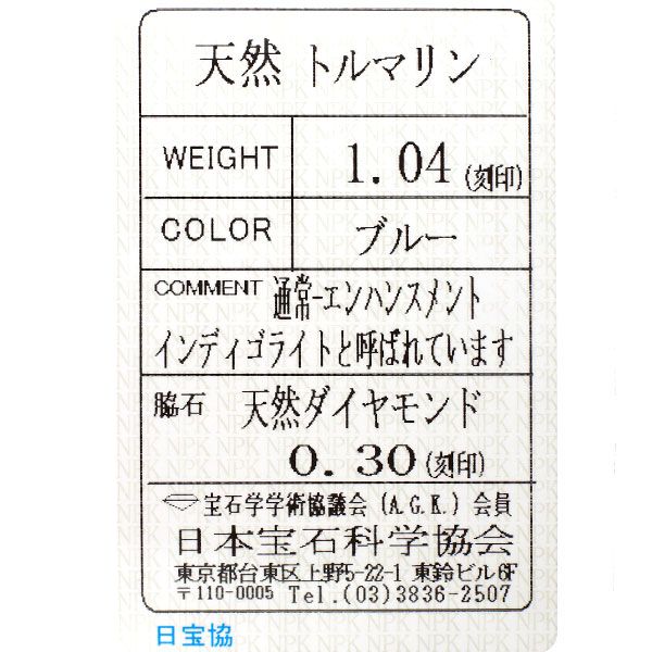Pt900 インディゴライトトルマリン ダイヤモンド リング 1.04ct D0.30ct