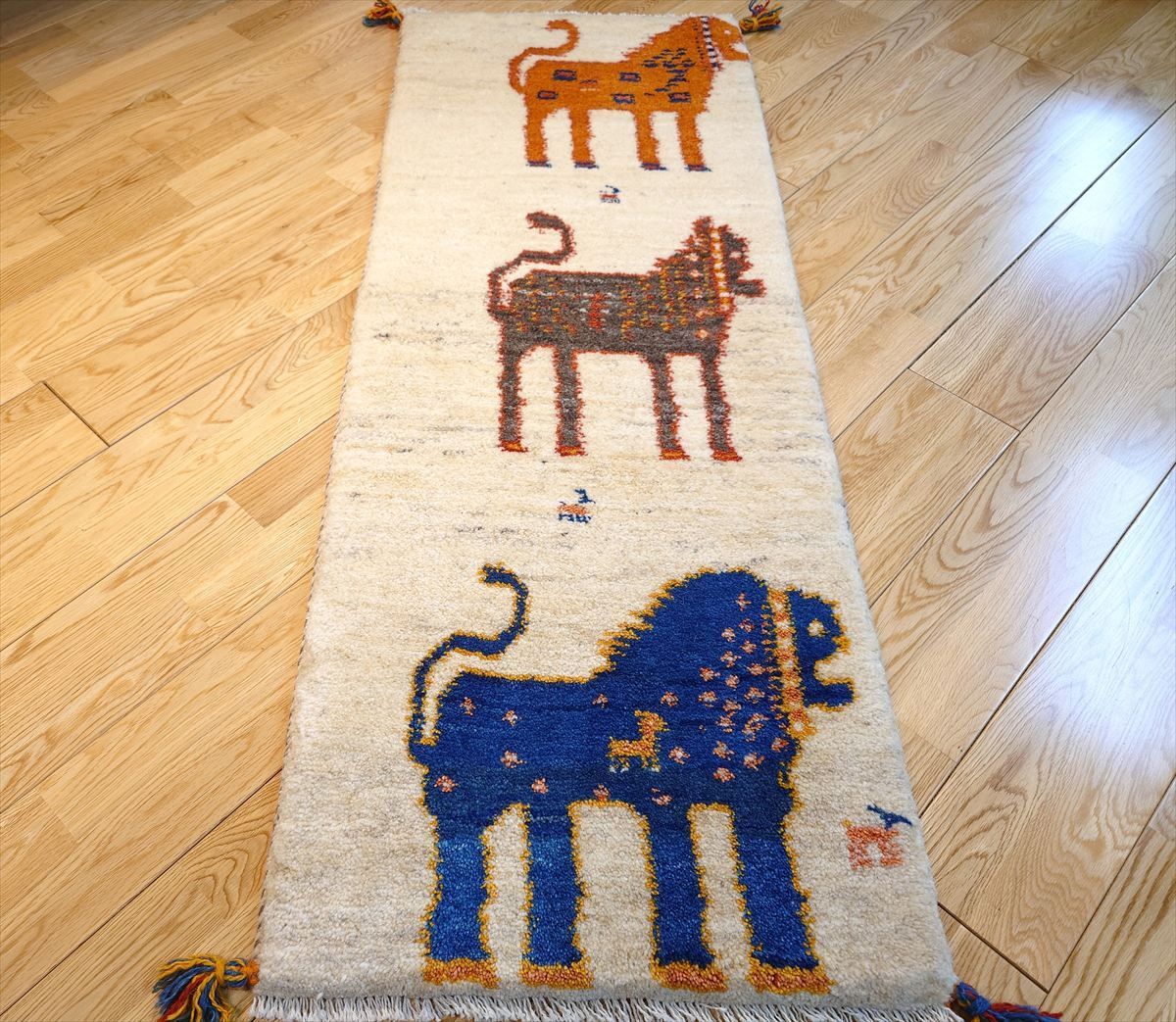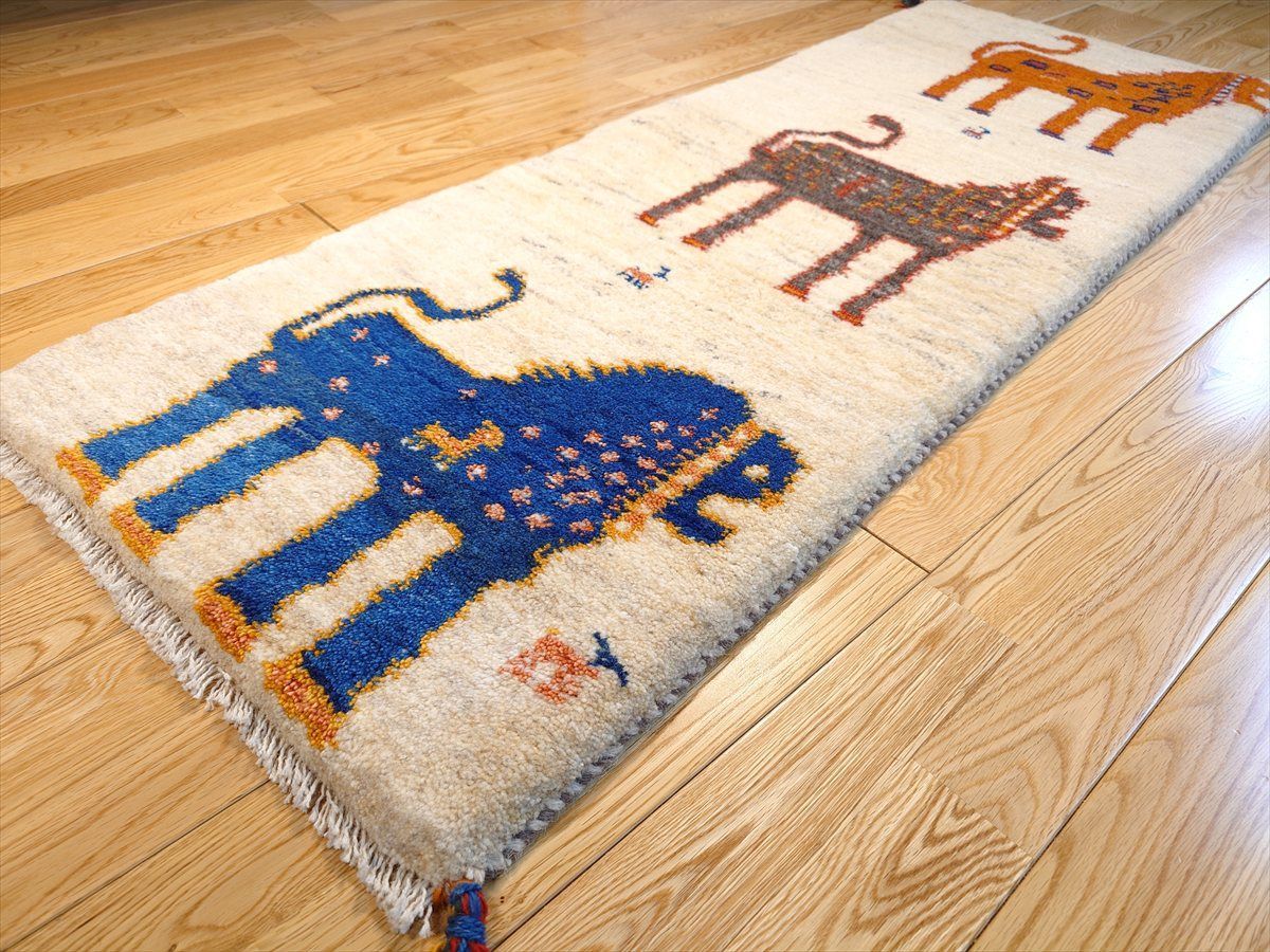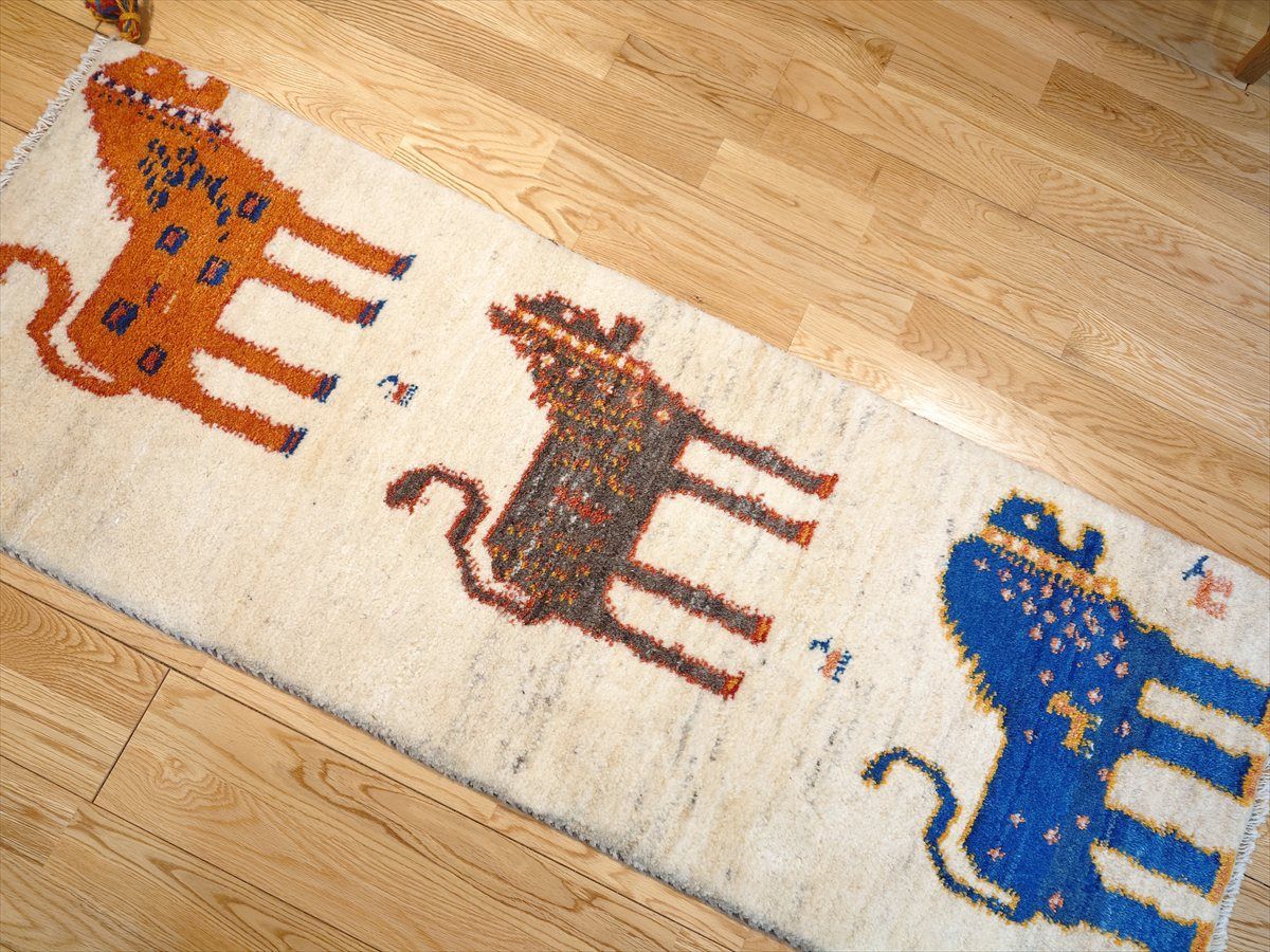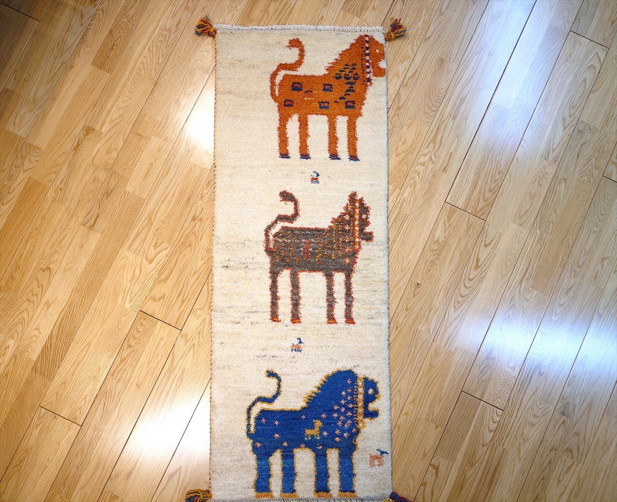 ペルシャ ギャッベ ランナー中 ラグ 135x53cm 3匹のライオン RJ12937