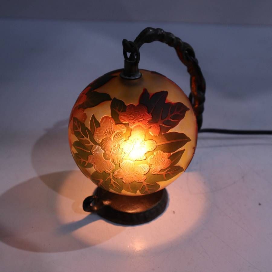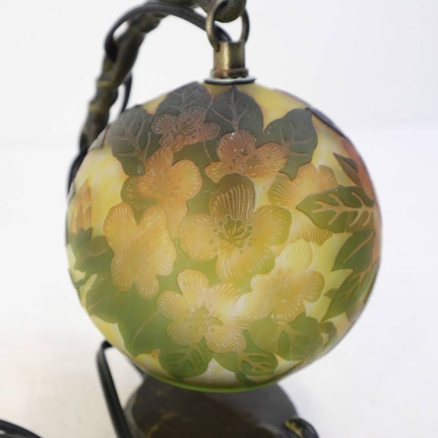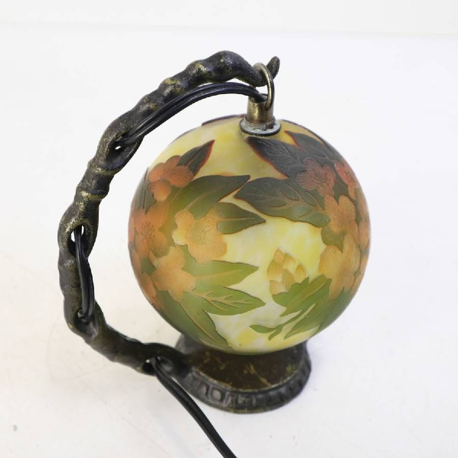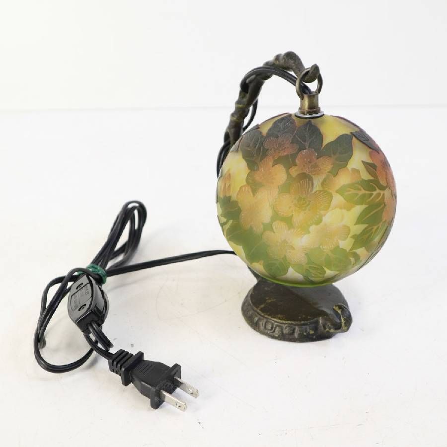 球状のガラスシェードを備えたアールヌーヴォー風のテーブルランプです。