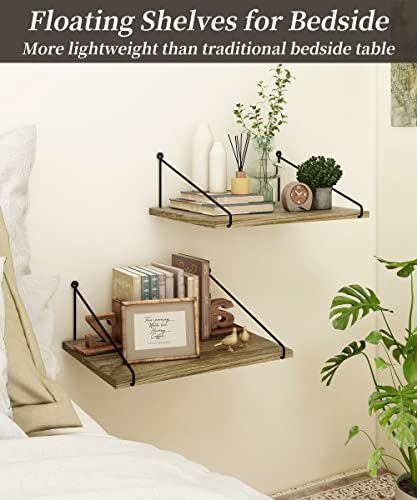 【素朴なフローティングシェルフ】桐材で作られたフローティングウォールシェルフ、フローティングシェルフは軽量でありながら頑丈で、素朴でアンティーク調の木製の外観があり、さまざまな家庭スタイルに適しており、あらゆる家庭環境を簡単に補完します。