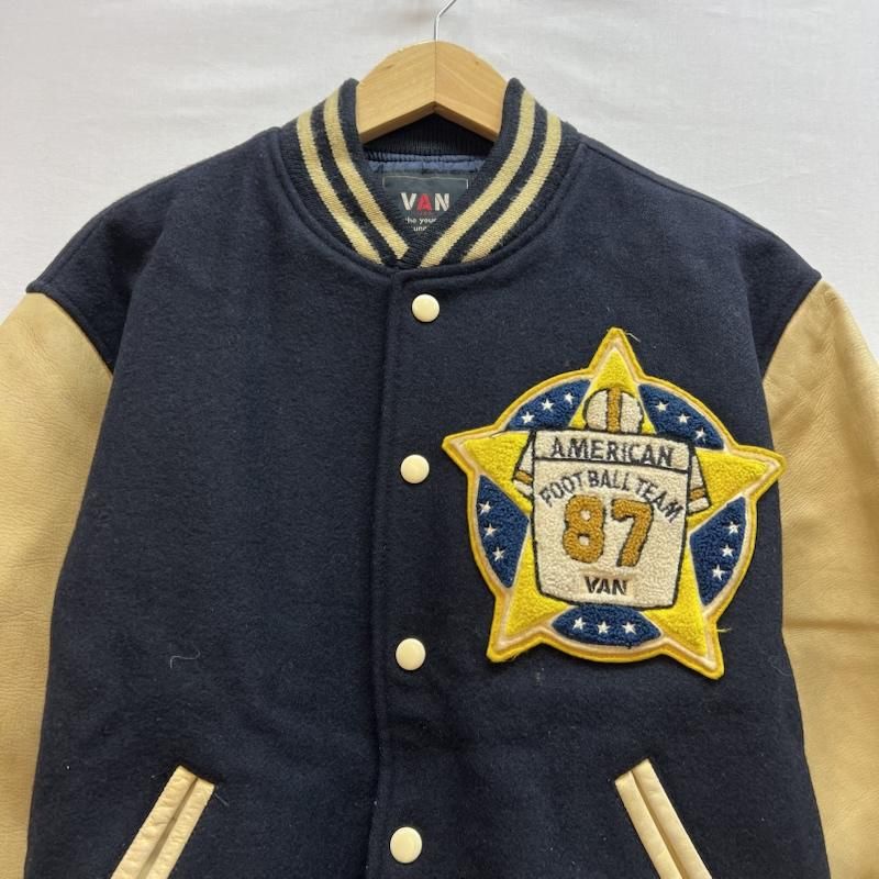 ヴァンヂャケット 80s アーチロゴ スタジャン レザースリーブ ヴィンテージ メンズ M ISItems 古着 50148976