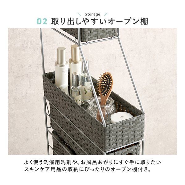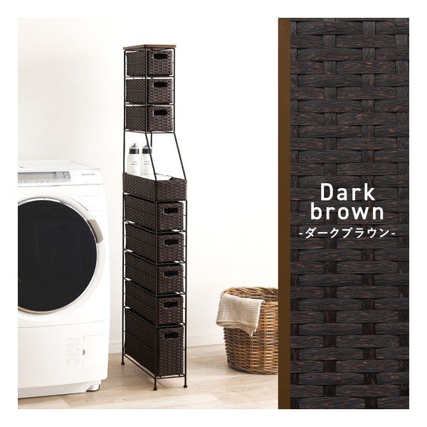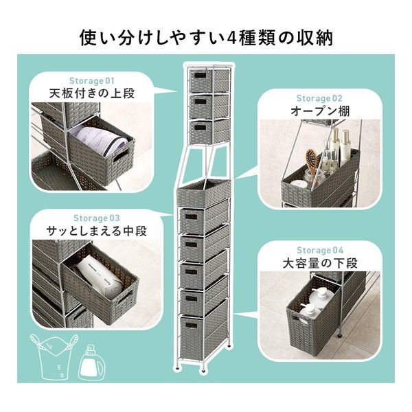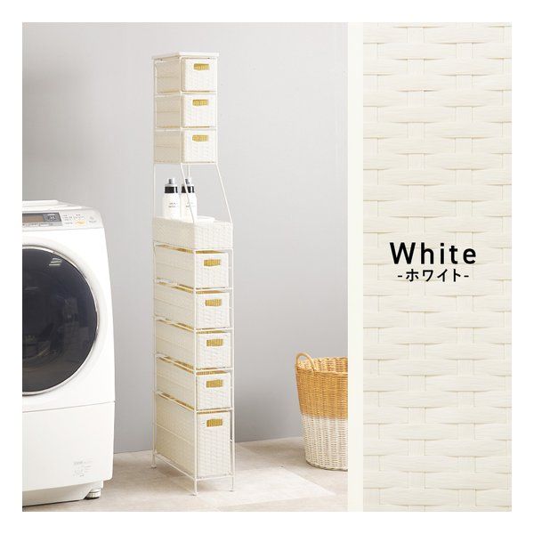 ●隙間におけるスリムなラタン調収納ラック