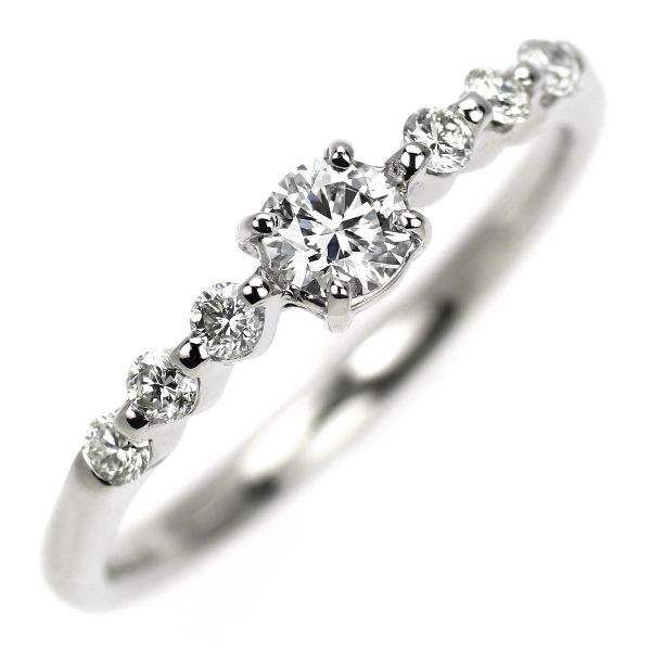 煌めきの美しい上質ダイヤモンドをメインに飾った、エレガントなプラチナリングです。