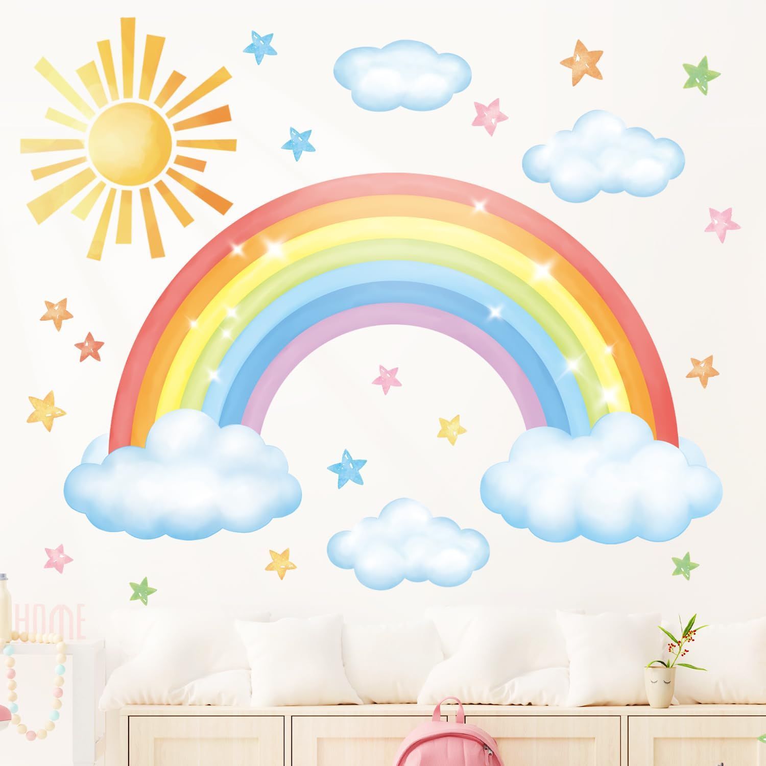 DECOWALL SG3-2314 虹、太陽、雲と星 ウォール ステッカー デコ 幼稚園 保育園 子供部屋 DIY 壁転写 シール ウォールアート シール 男の子 女の子 こども バスルーム デコレーション ビニール 寝室用 ティーン キッズ ウォールペーパー 壁紙 家具 部屋用 処理 乳児 子 装飾的 リビング キッチン 虹