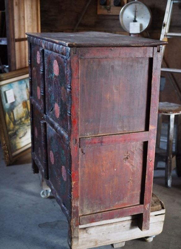This is an antique Chinese cabinet from the Qing dynasty. It's still usable but in fairly worn condition. The front is painted over leather. The back is rough and has an old-fashioned finish. There is a warp on the back of the tabletop. Please check the photos and video for signs of deterioration. (◎ [Note] ① Items over K size cannot be delivered via "household goods delivery" on Tuesdays. ② Items over 220 and H size cannot be delivered to some remote islands.) If you have any questions, please contact us by phone, LINE, email, or Instagram message. We will answer honestly.(幅)1000mm×(奥)500mm×(高)1010mm