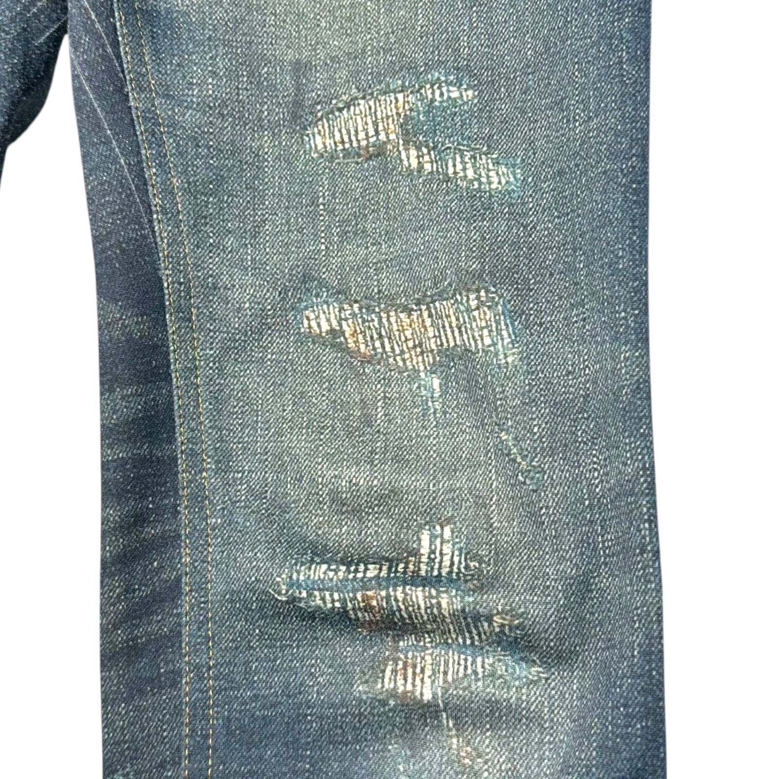 COMME des GARCONS JUNYA WATANABE コムデギャルソンジュンヤワタナベ 10SS ダメージ 加工 デニム 転写 スリム パンツ JE-P201 XS インディゴ AD2009