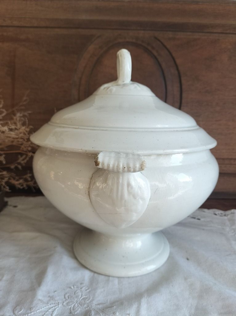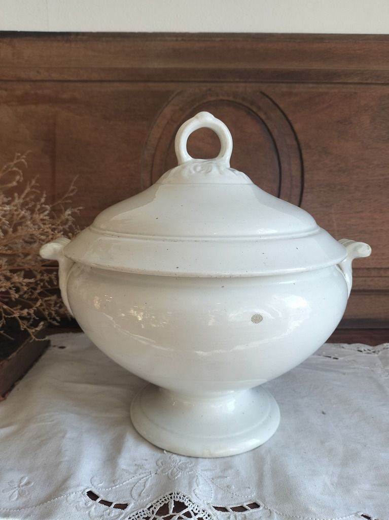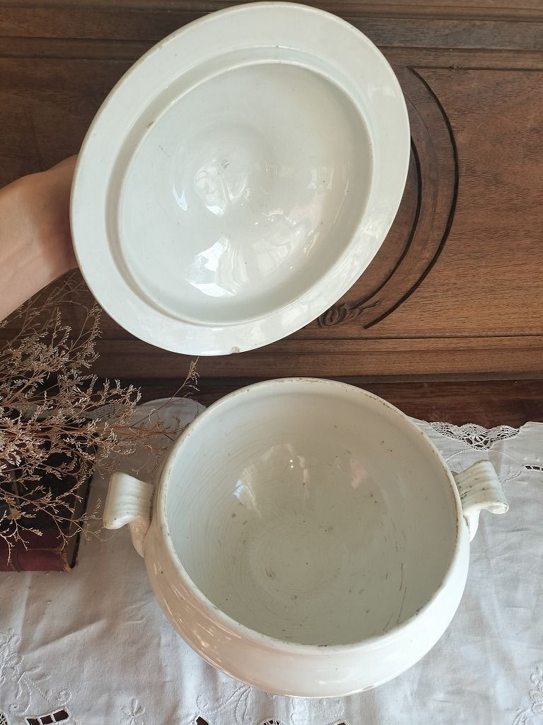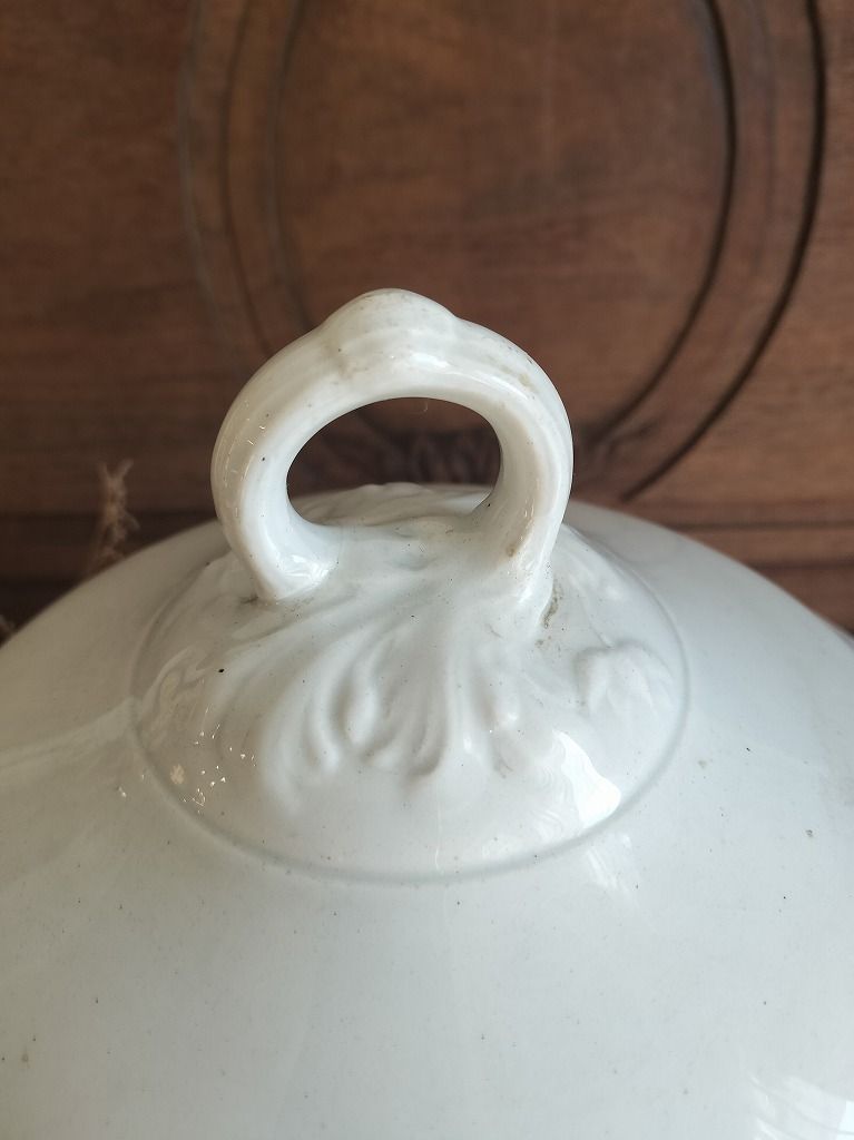 フランス アンティーク 白い 素敵な 蓋つき スーピエール ニーデルヴィレー 1900年です。