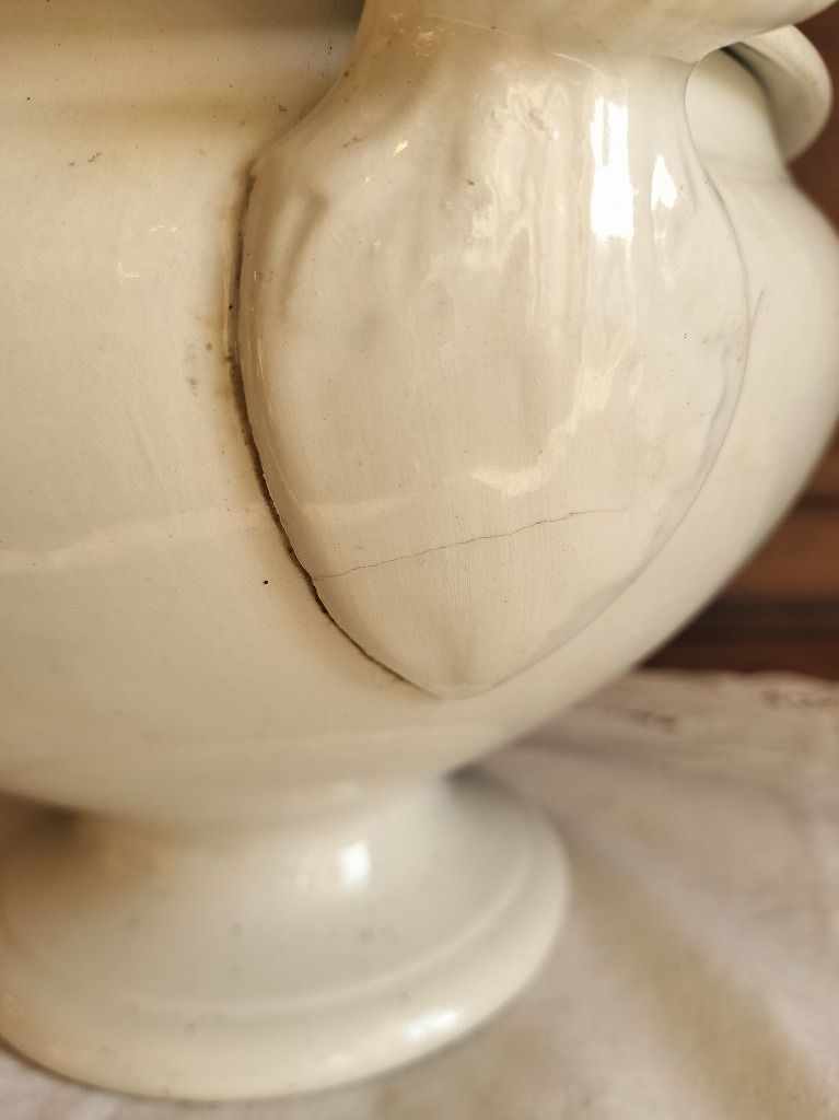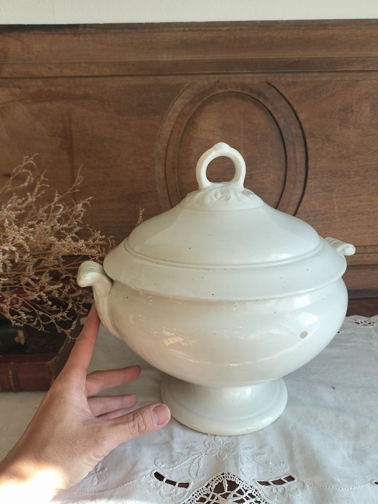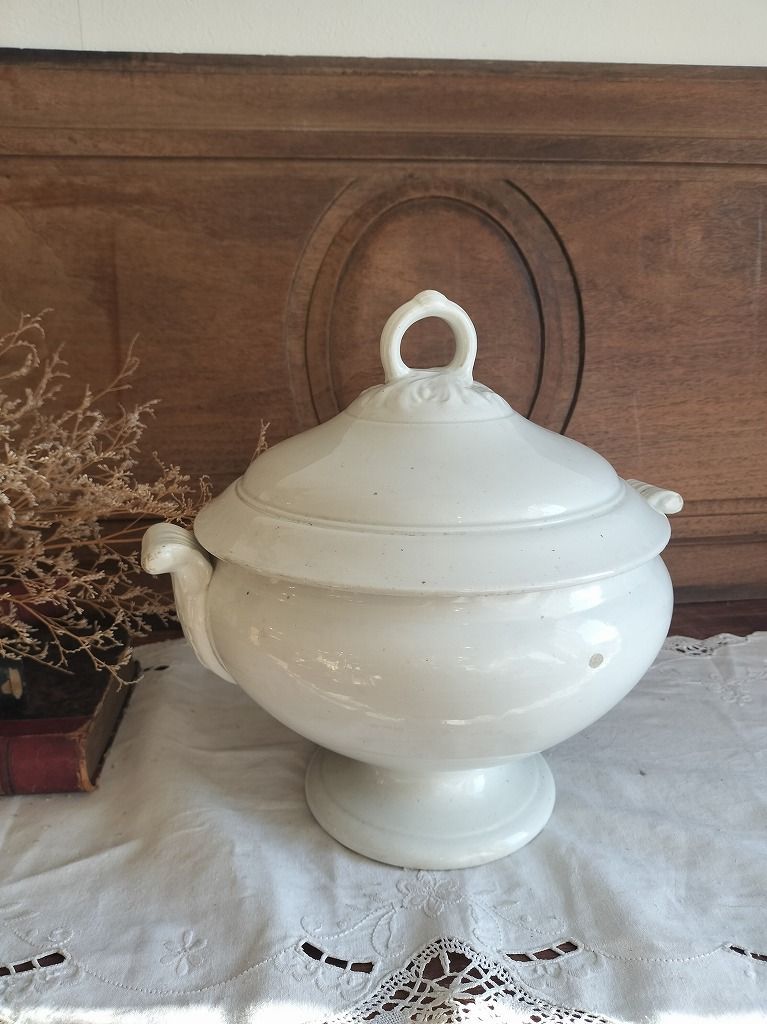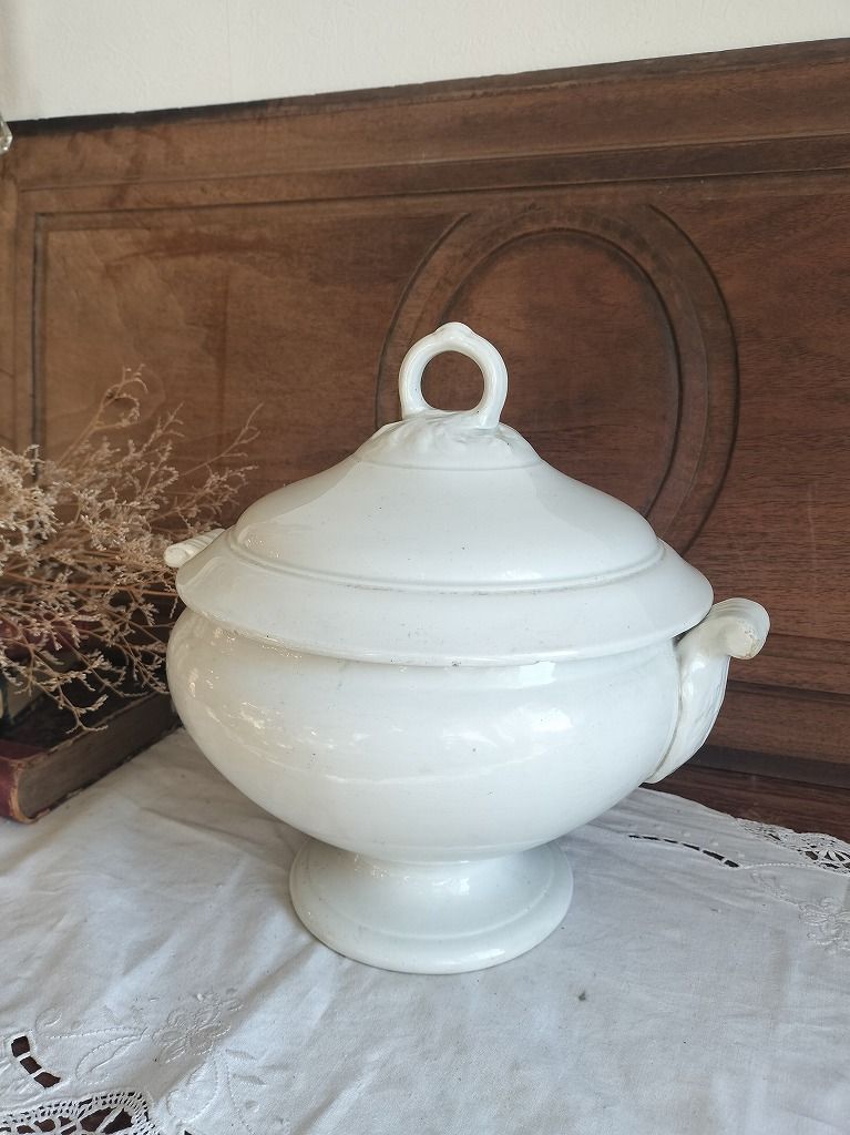 フランス アンティーク 白い 素敵な 蓋つき スーピエール ニーデルヴィレー 1900年です。