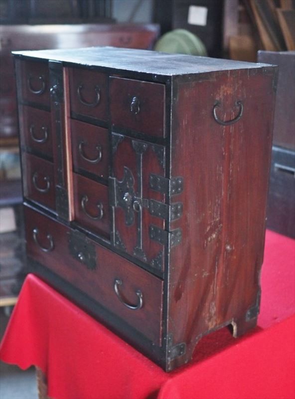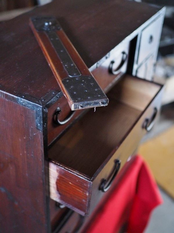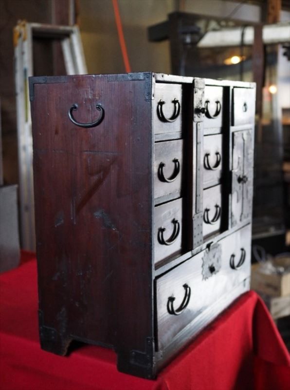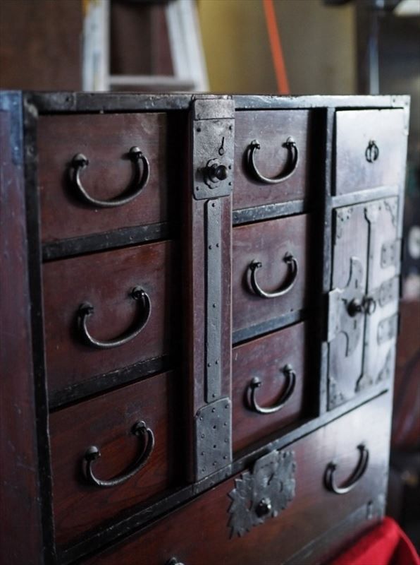 江戸時代の小箪笥。前面は欅造りです。カギはありません。劣化については画像・動画をご確認ください。(◎【注意】① Kサイズ以上の「家財便」は火曜日配送NGです。②離島一部220・Hサイズ以上は配送NGです。)不明点は電話・LINE・メール・Instagramメッセージにてお問い合わせください。誠実にお答えいたします。