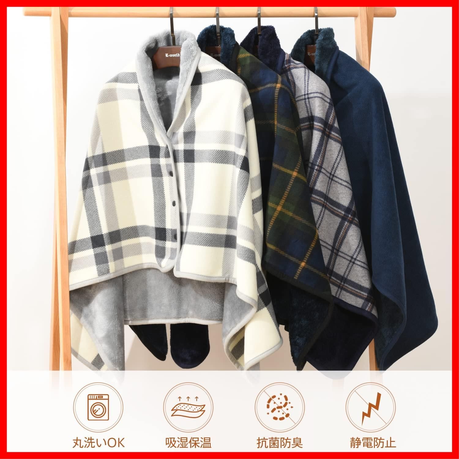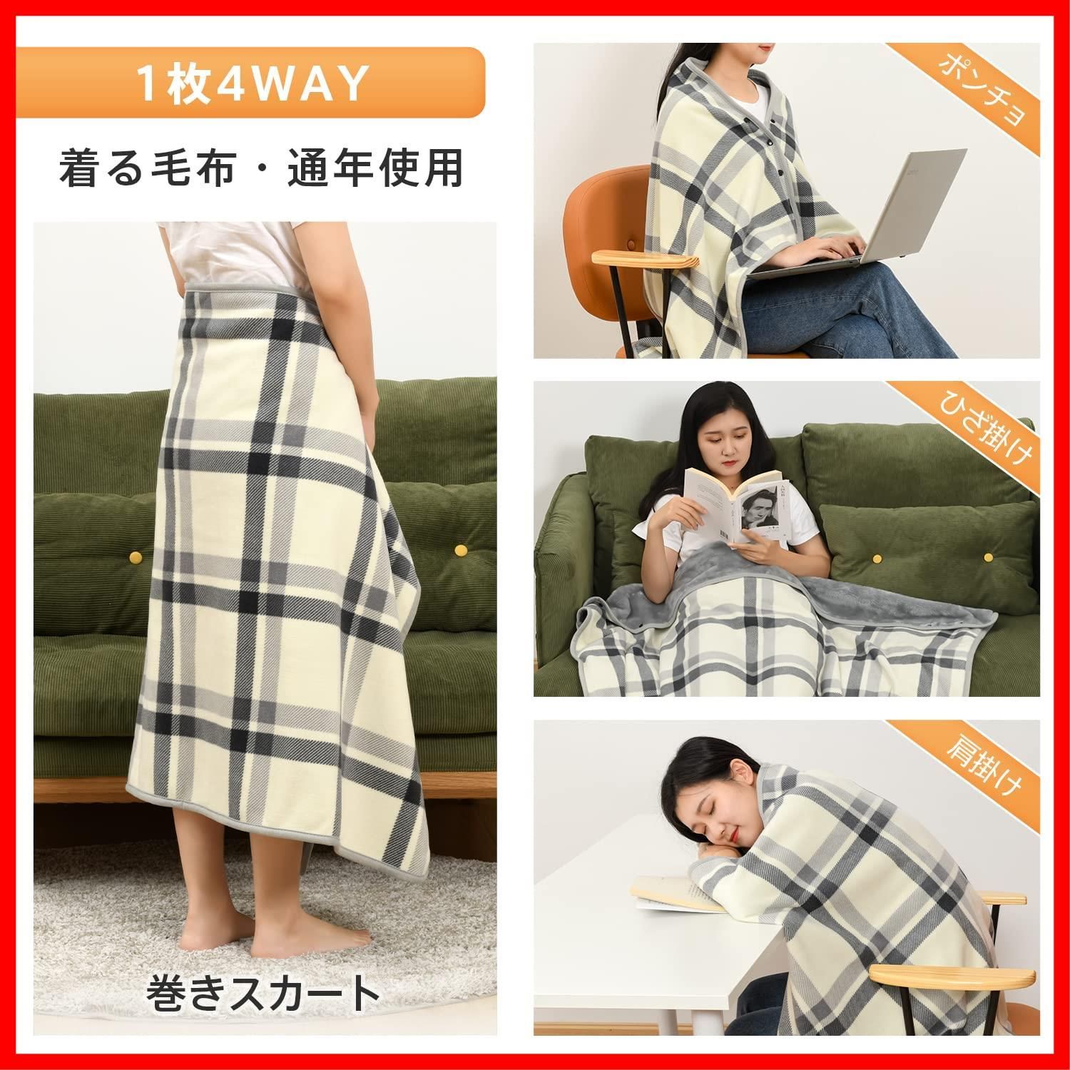 商品 大判 毛布 ブランケット 4way 着る毛布 肩掛け ボタン付き あったか 防寒対策 ひざ掛け 静電気防止 洗える 通年使用 クモリ Kumori ホワイト 80X130cm