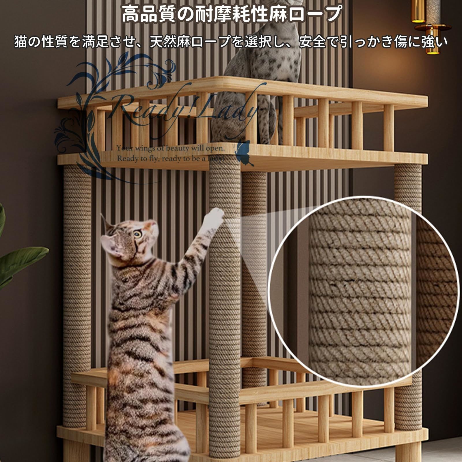 丈夫で安全:キャットケージは丈夫な木製フレーム、スプレー塗装なしの無垢材を採用しています。 2階と3階のスペースは、猫ちゃんの食事、飲み物、遊び、睡眠のニーズを満たすことができます