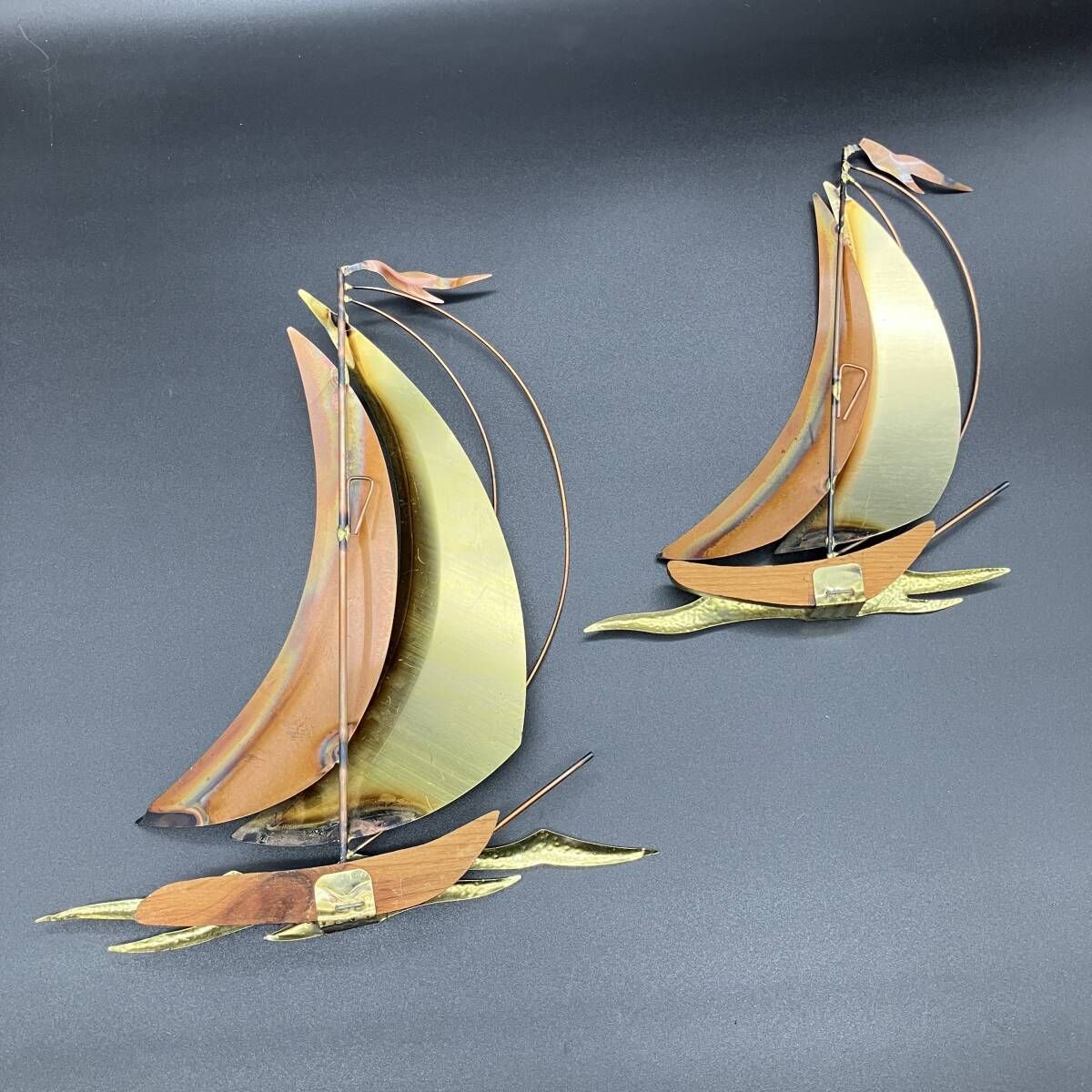 1960年代アメリカ製のビンテージセイルボート&ヨットのウォールデコ ペアセットです。