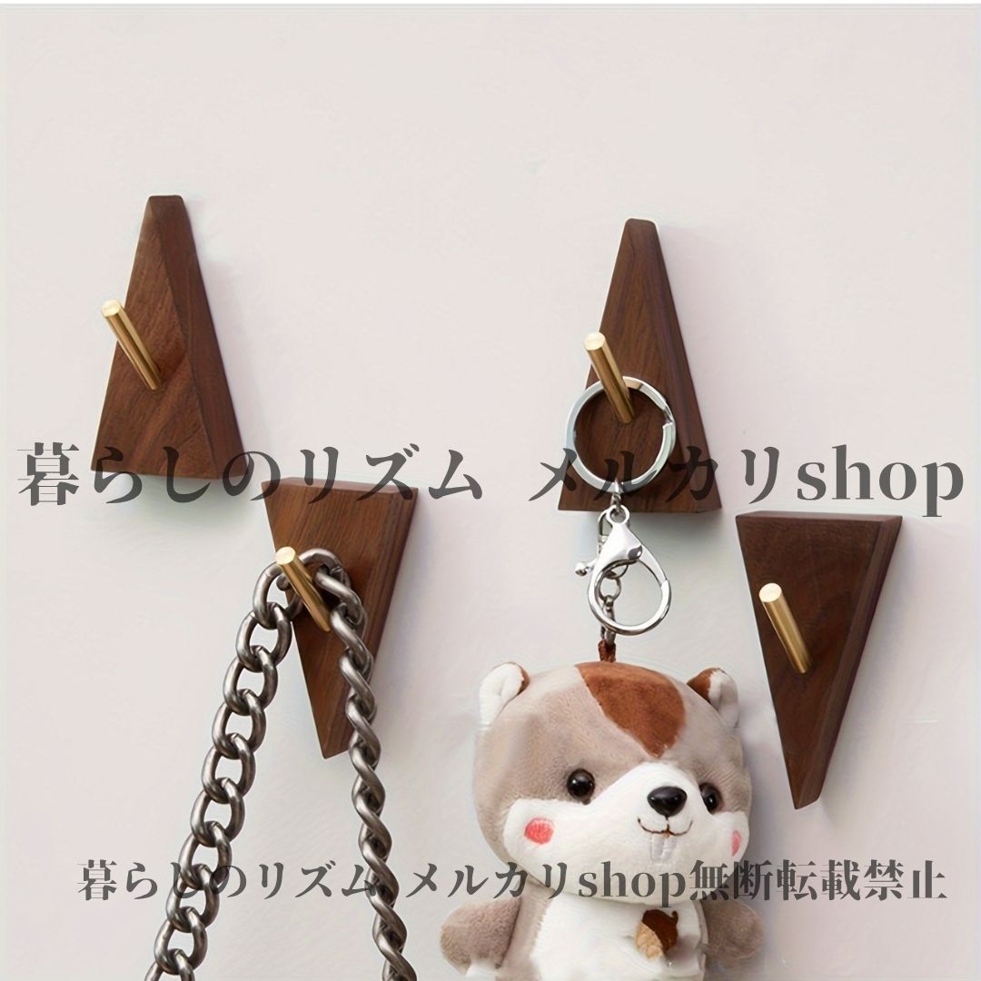ウォールフック ゴールデン装飾付き スカンジナビアウォールフック 4個セット 錆び防止 トライアングル 三角形 ネジ取り付け 省スペース バスルーム エントランスハンガー モダン ミニマリスト ホームデコレーション ローブ タオルフック