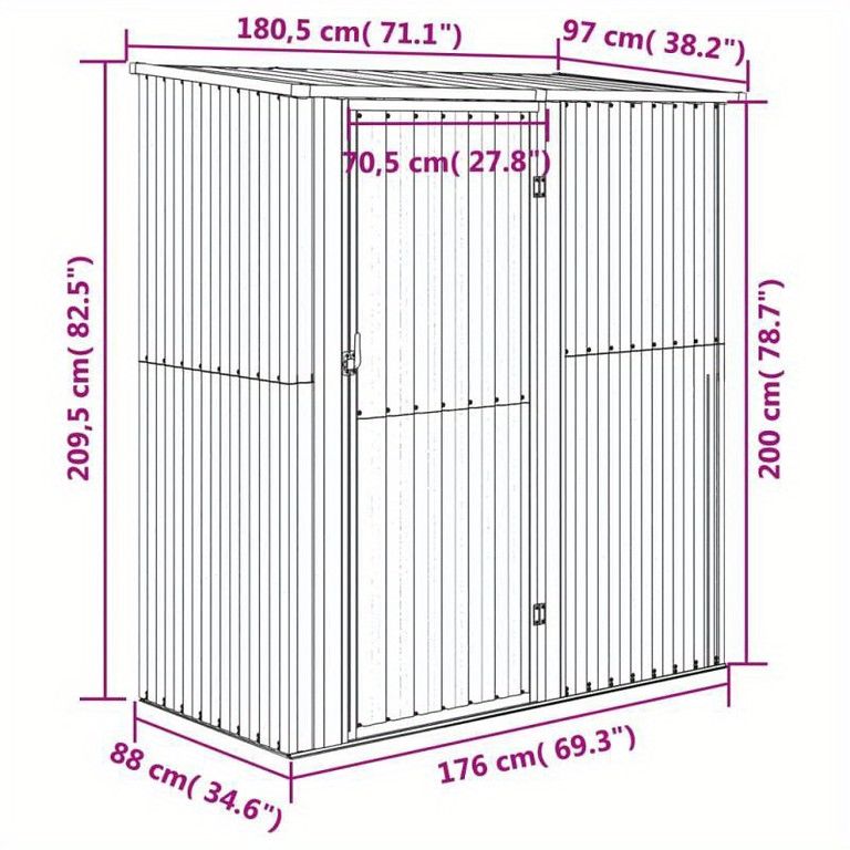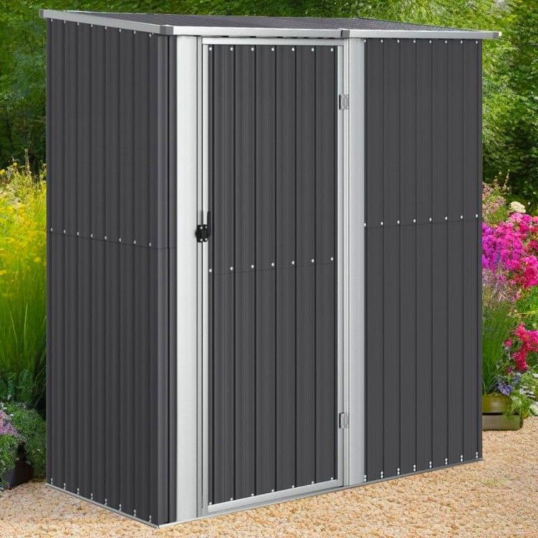 耐久性抜群 亜鉛メッキ鋼製ガーデンシェッド 幅180.5cm 奥行97cm 高さ209.5cm アンソライトカラー 屋外収納 物置 DIY 庭