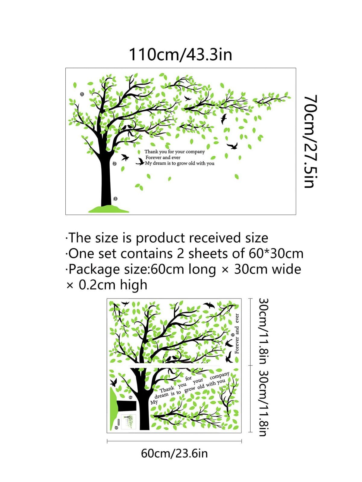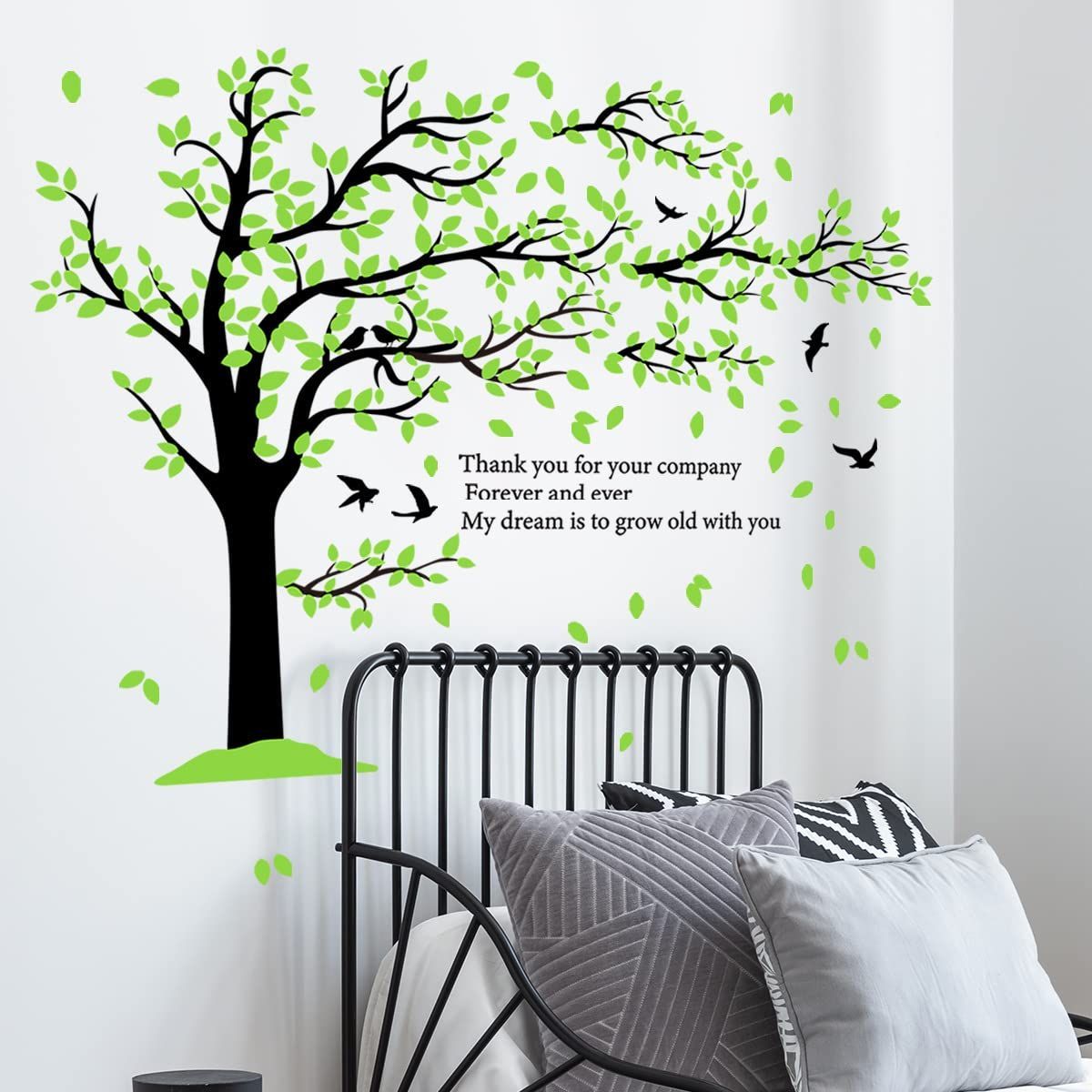 WOHAHA ウォールステッカー おしゃれ 木 大きい tree 緑 葉っぱ 景色 木の上の鳥 壁紙シール はがせる オシャレ 北欧 英字文字 My dream is to grow with you リビング ベッドルーム 壁に貼る 壁飾り 防水 壁すてっかー 剥がせる