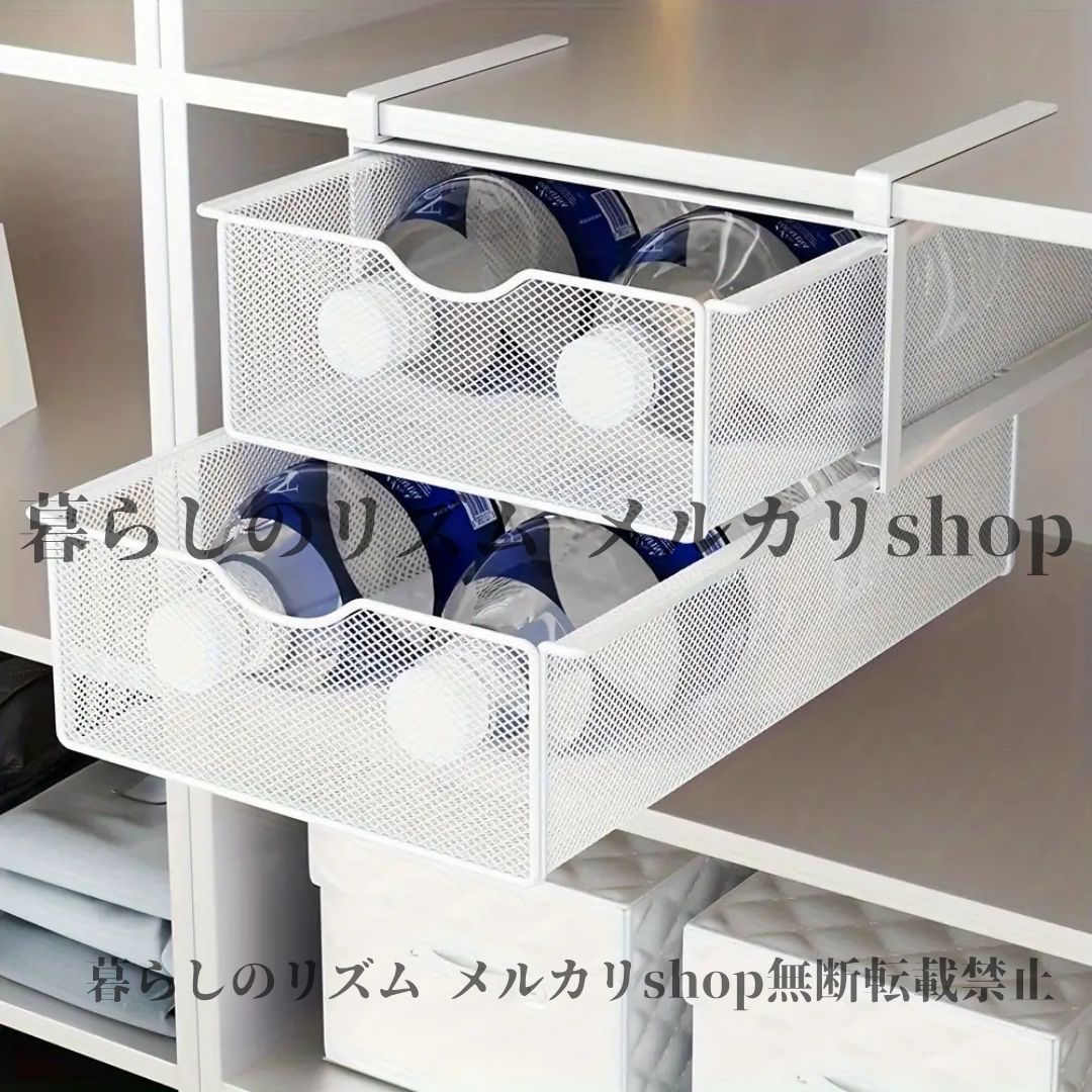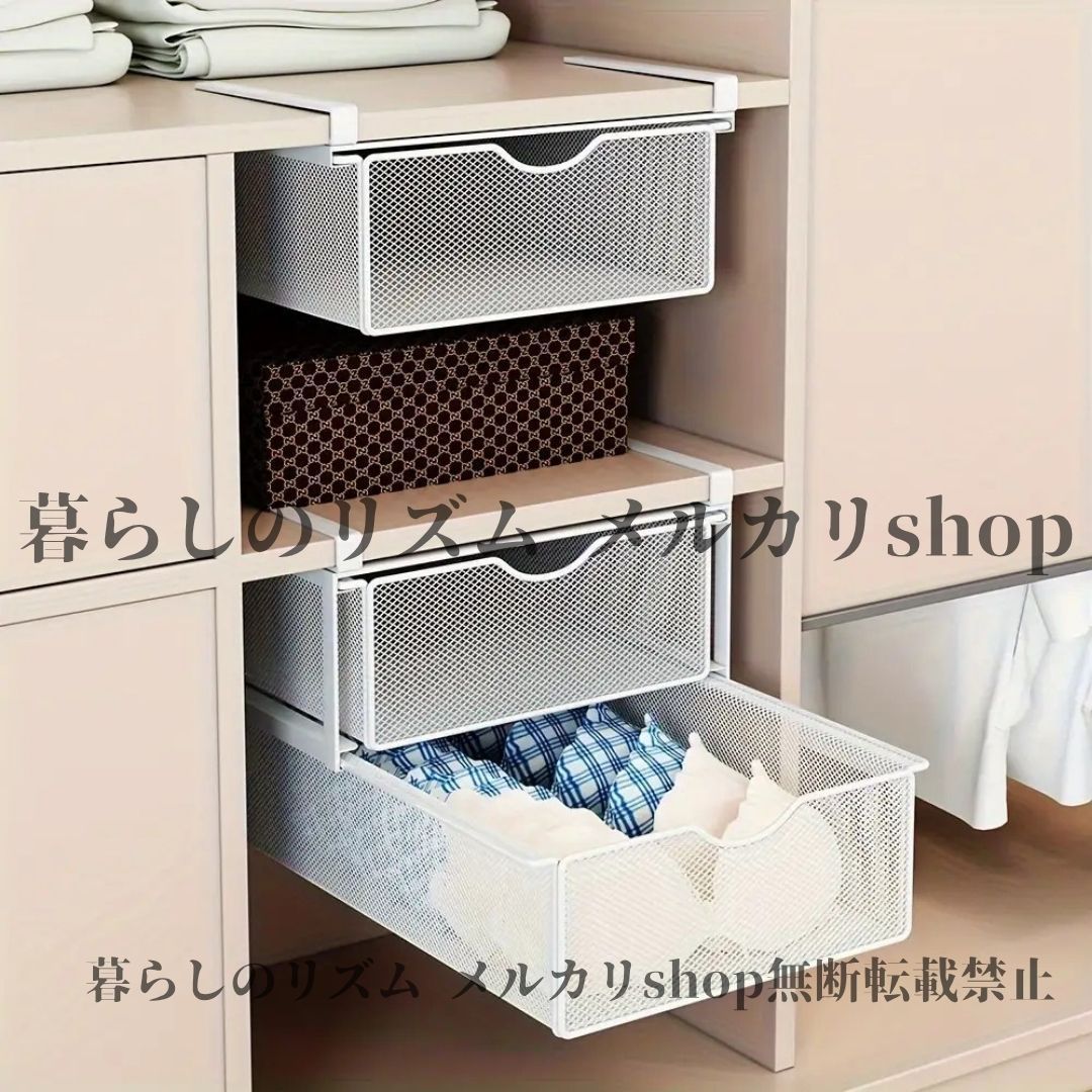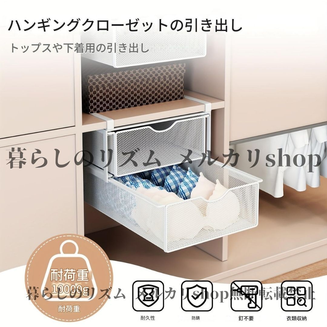 収納ラック 省スペース ステンレス製 二層 壁掛け メタル 引き出し ステンレス収納ラック 調節 な棚 吊り下げシステム付き 衣類 靴下 下着用 垂直オーガナイザー 簡単組み立て コンパクト設計 寝室 子供部屋 ホワイト