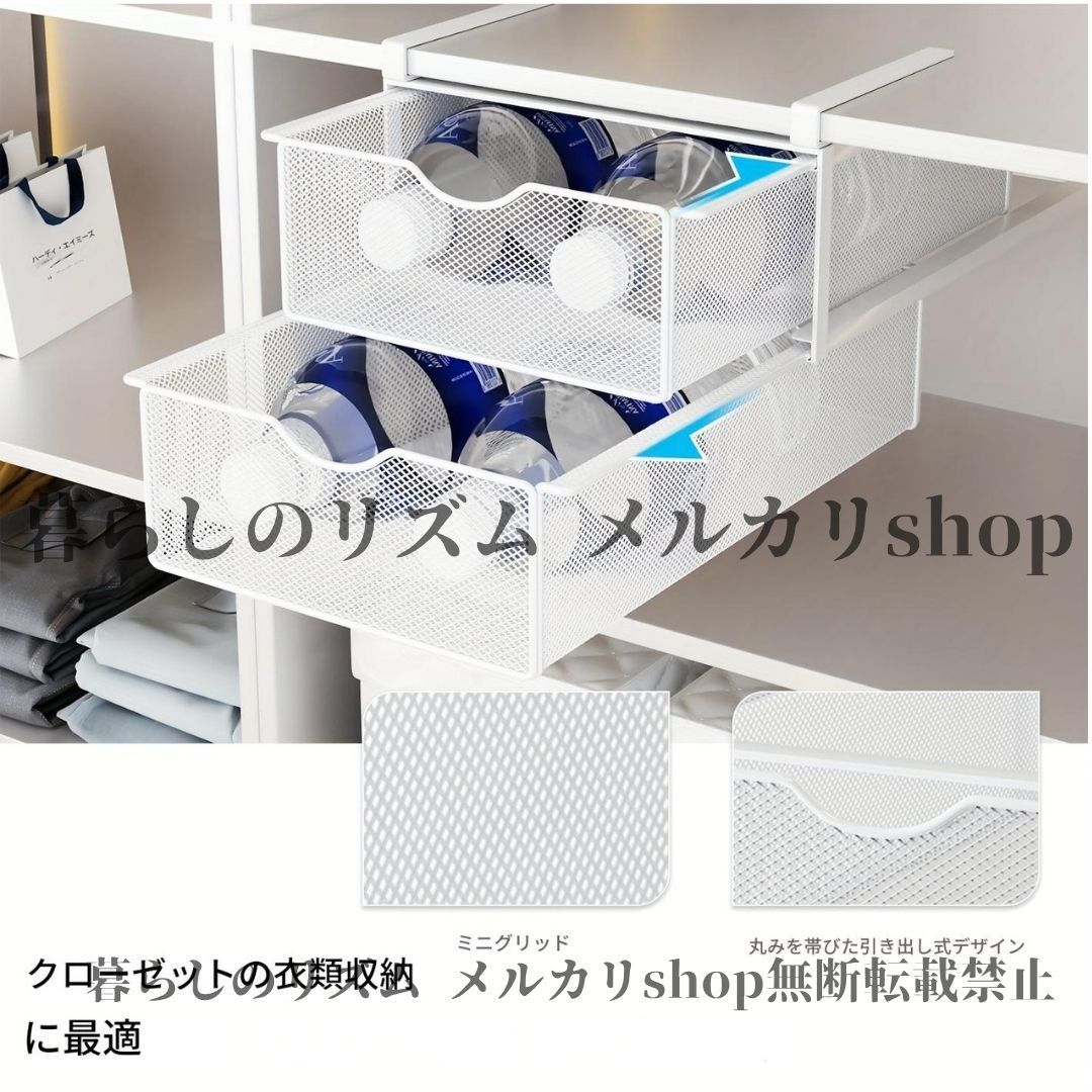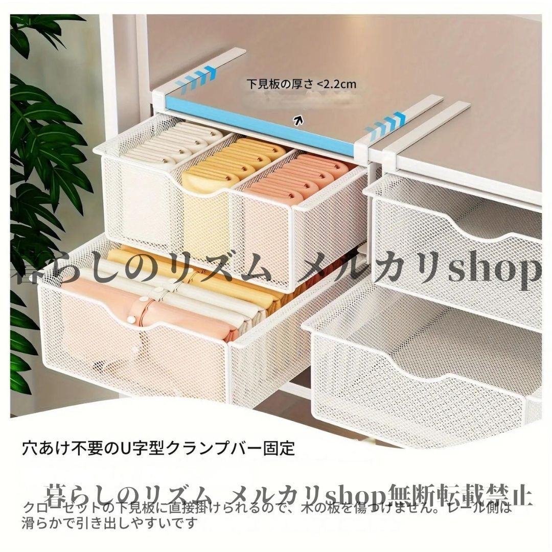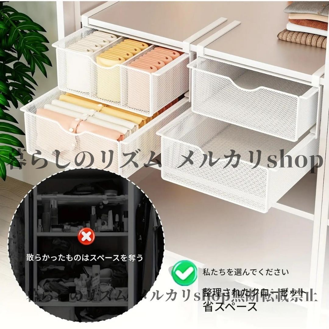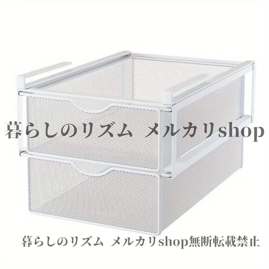 収納ラック 省スペース ステンレス製 二層 壁掛け メタル 引き出し ステンレス収納ラック 調節 な棚 吊り下げシステム付き 衣類 靴下 下着用 垂直オーガナイザー 簡単組み立て コンパクト設計 寝室 子供部屋 ホワイト
