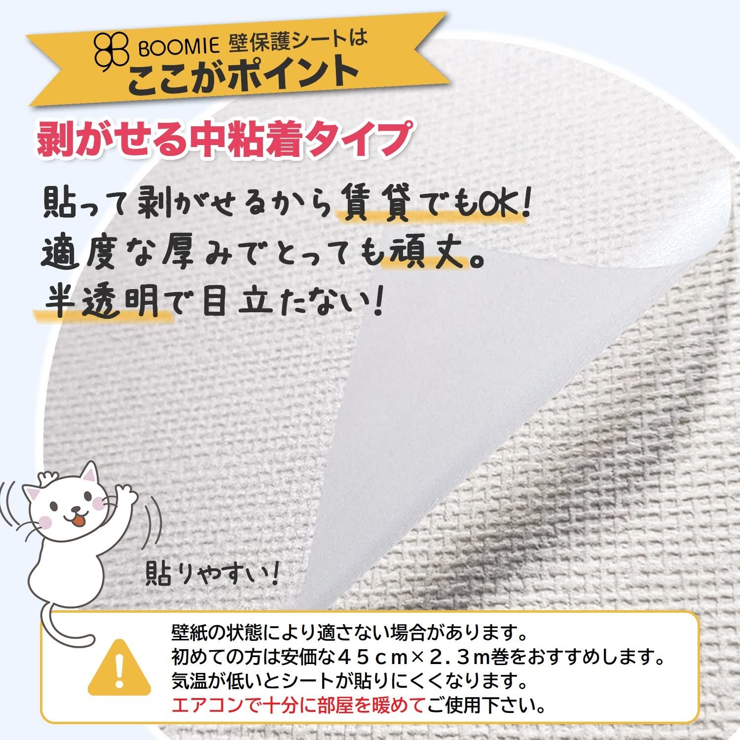 BOOMIE ニャンとも不思議な壁保護シート はがせる 猫 壁紙保護 シート ひっかき 防止 壁 半透明 ねこ 44cm×4.9m
