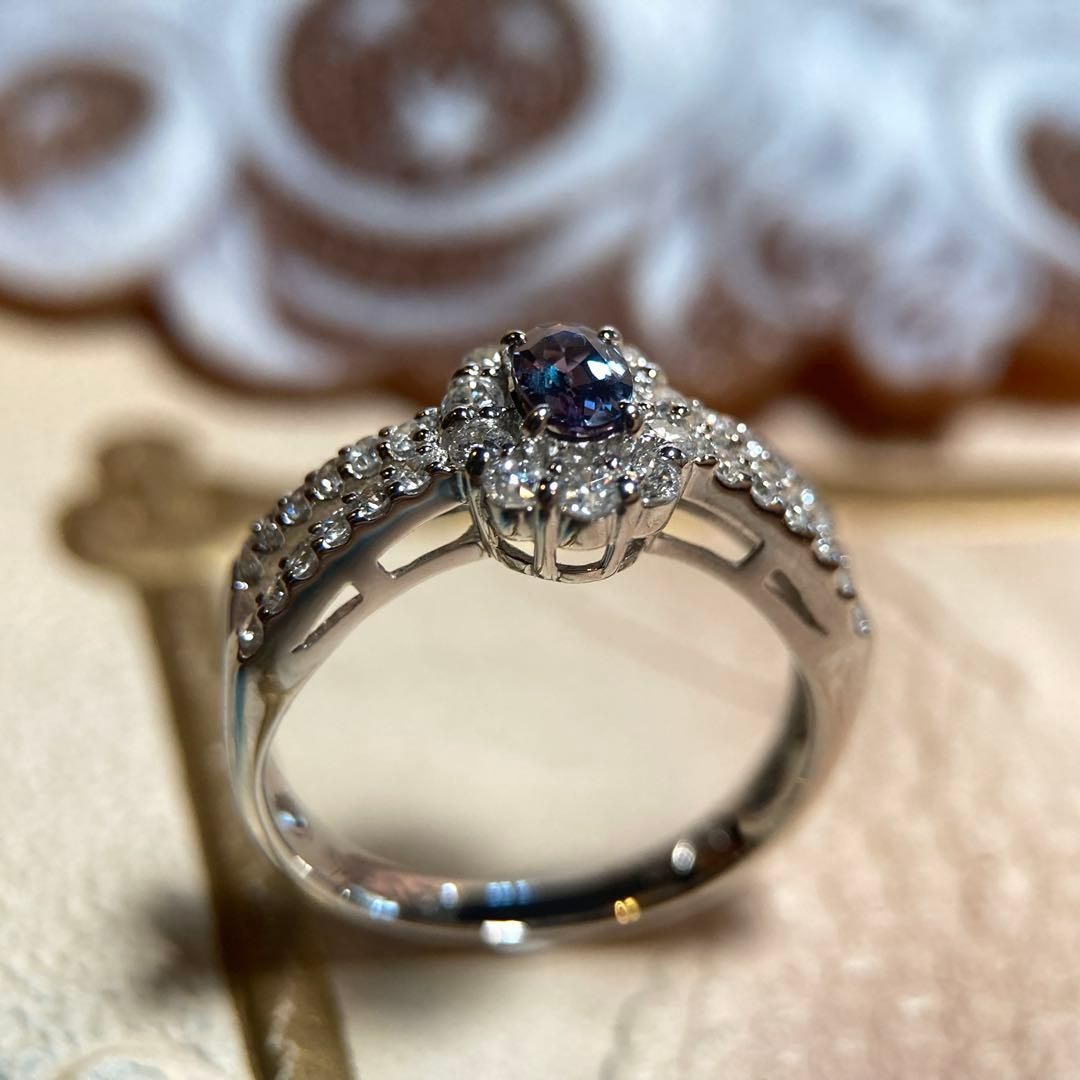 光とともに表情を変えるアレキサンドライトの魅力を、ぜひ日常の指先でお楽しみください。