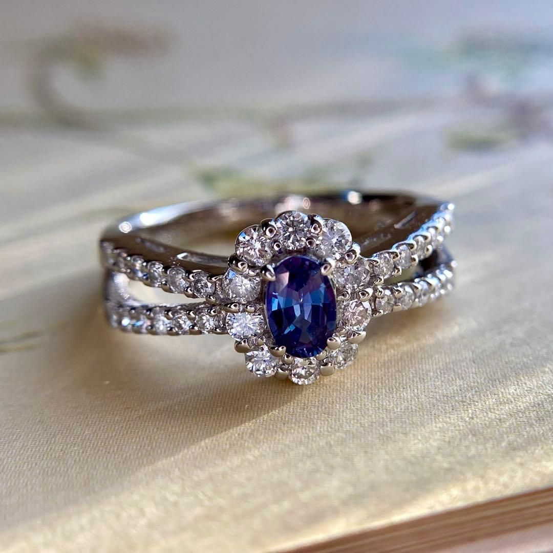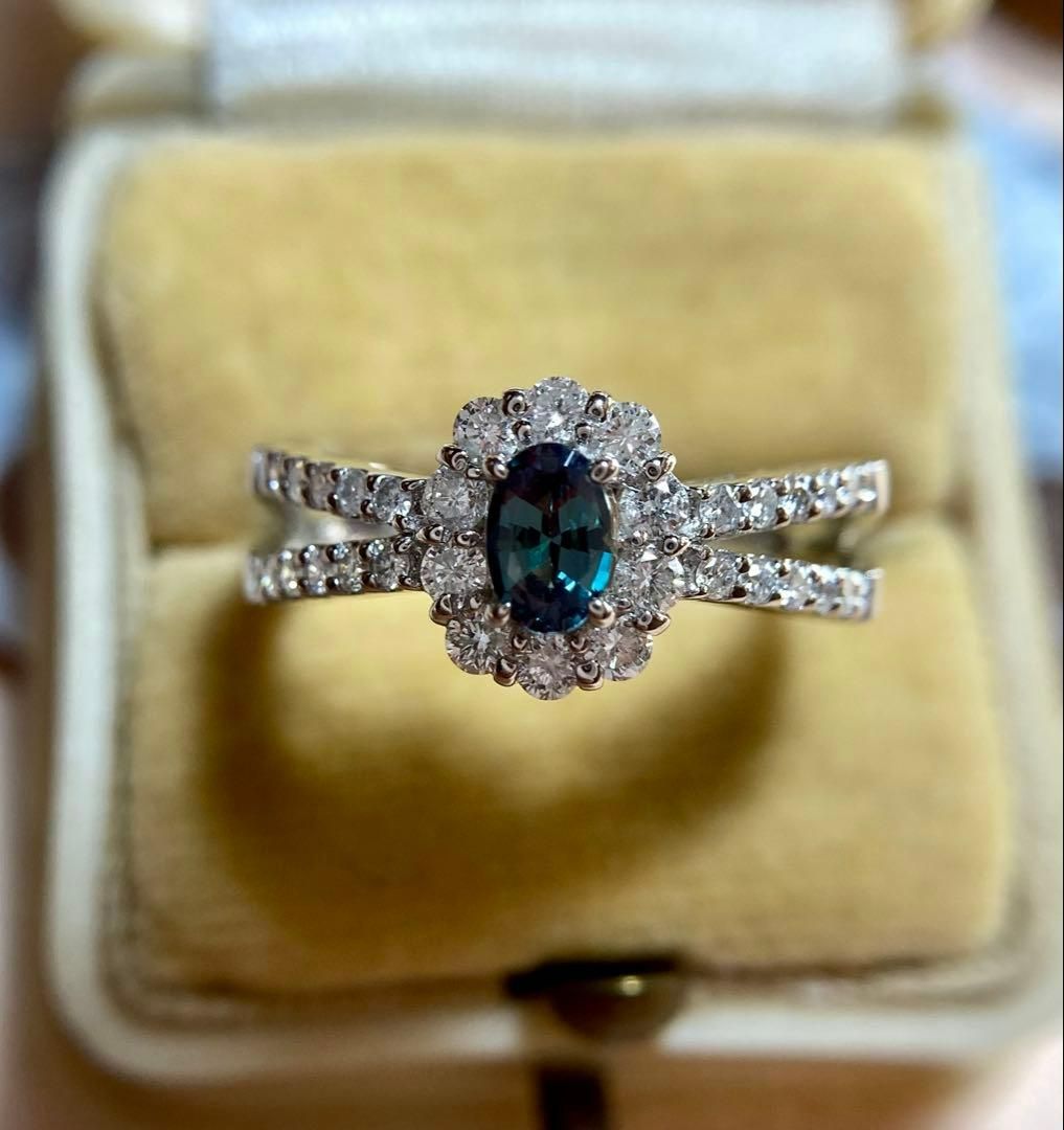 光をまとうブラジル産アレキサンドライト × ダイヤモンドリング