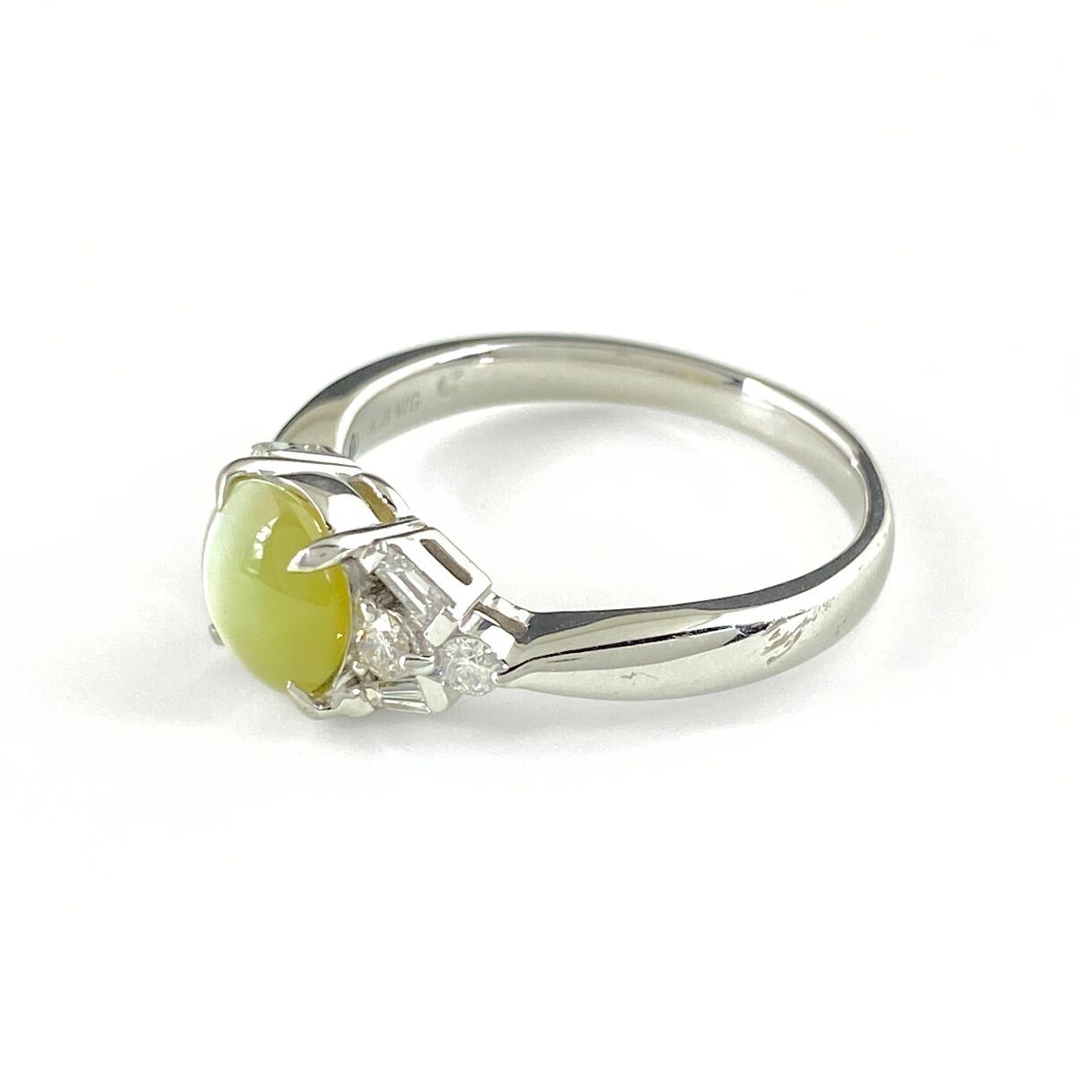 クリソベリルキャッツアイ デザインリング WG ホワイトゴールド 指輪 メレダイヤ リング 14号 K18 WG レディース