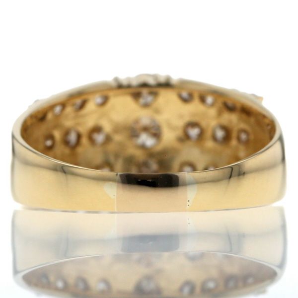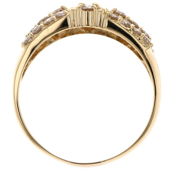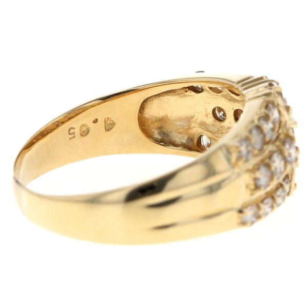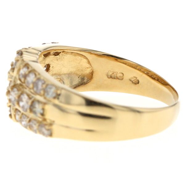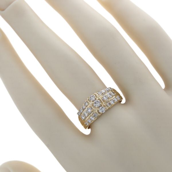 K18YG イエローゴールド リング ダイヤモンド 1.05ct 3列 ライン パヴェ 幅広 デザイン 指輪 17号 仕上済 zz