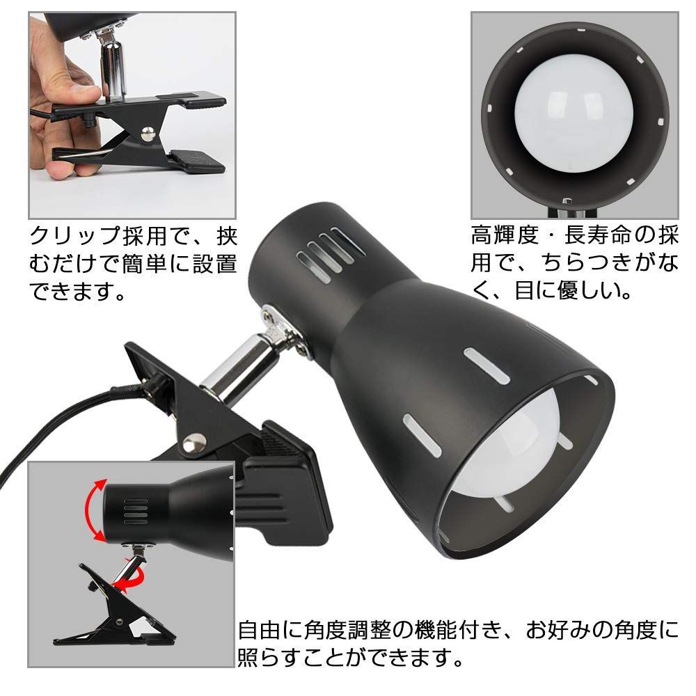 新着商品 読書 350°回転 中間スイッチ付き 広配光 仕事 電球色 9W 800lm 60w形相当 屋内用ライト 電球付き led led ブラック E26 クリップライト Dotoy