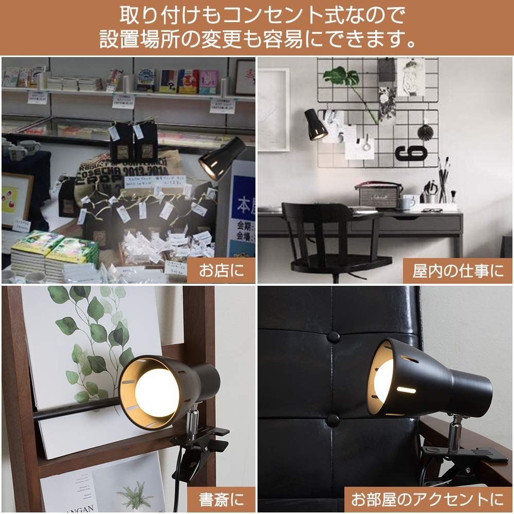 【屋内用多目的ライト】中間スイッチ付きなので、コードを抜かずに点灯/消灯ができてとても便利です。LED電球を採用した屋内用クリップランプ です。店舗やお部屋の補助照明に最適なクリップ式LEDライトです。