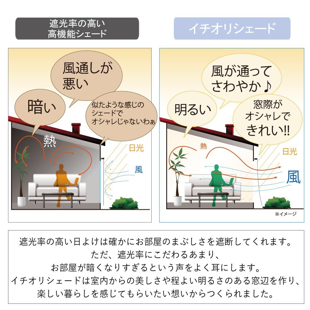 お庭の緑とマッチする、シックで落ち着いたグリーンのシェードです。森の木陰をイメージした、自然と調和する色彩美を感じていただけます。イチオリシェードは特殊な製法で、やわらかくしなやかな自社製品の高級生地を使用しております。光を完全に遮断するのではなく、家の中に明るさを取り入れる程度にやわらかな日陰を作り出します。シーズンオフも考え簡単に水洗いでき、小さく畳んで収納も出来ます。