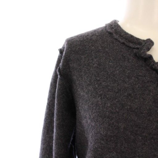 ジュンヤワタナベ JUNYA WATANABE COMME des GARCONS AD2007 ニットワンピース ミニ丈 アシンメトリー 長袖 クルーネック フリル ウール ワン S グレー BB