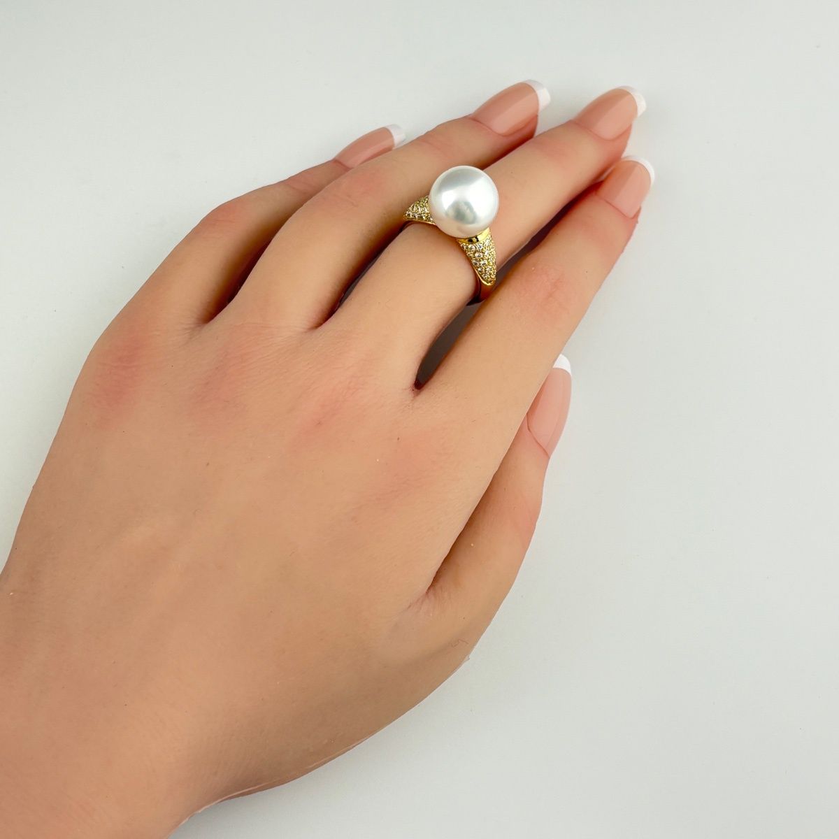 パール デザインリング YG イエローゴールド 指輪 メレダイヤ 真珠 リング 14号 K18 パール ダイヤモンド レディース