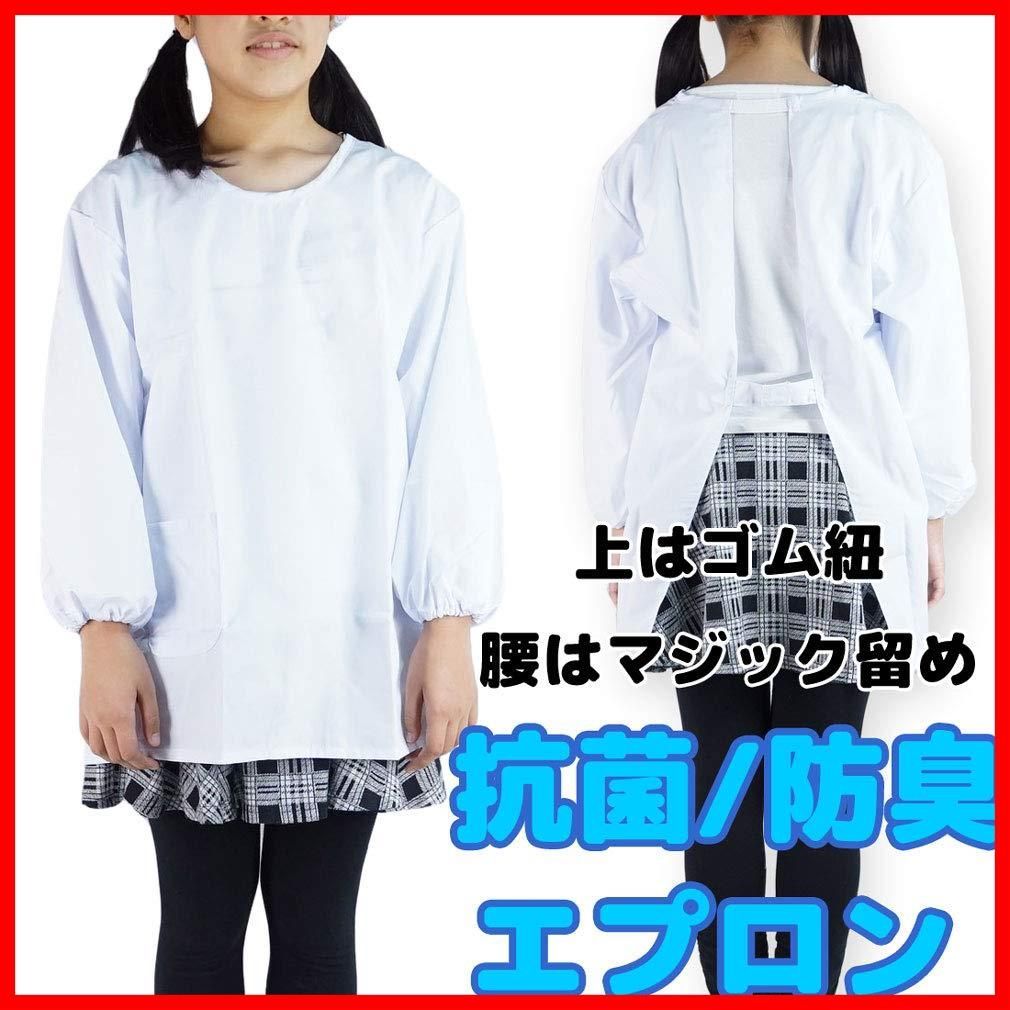 防臭 抗菌 白い給食着 給食服 給食割烹着 給食用エプロン 小学校 中学校 調理実習 110cm 120cm 130cm 140cm 150cm 160cm (140set)