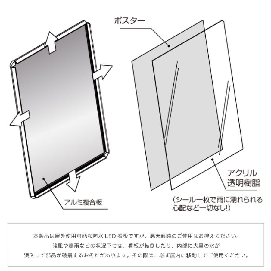 LEDパネルスタンド看板 B1サイズ 片面タイプ 屋外対応 ブラック H1430mm alp-b1s-bk