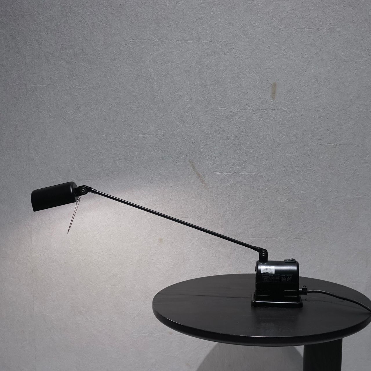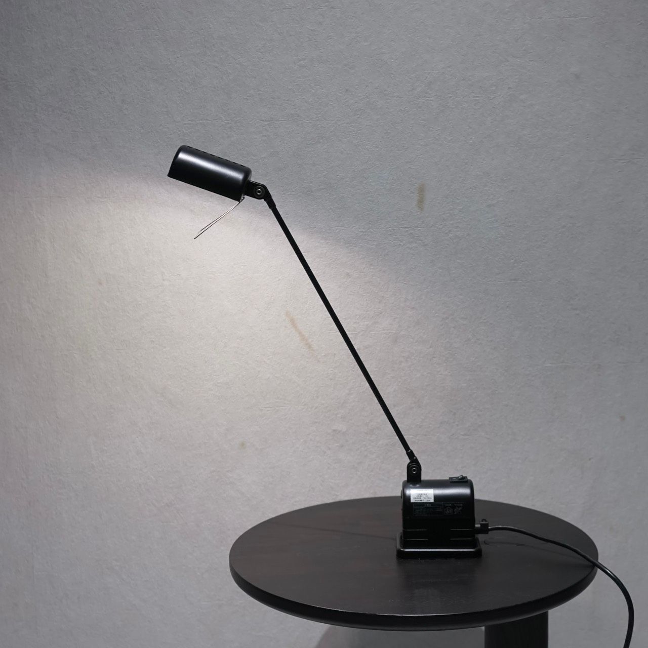 シャープな直線で構成されたアームと、工業機器のようなベースデザインが相まって、インダストリアルな雰囲気をほどよく漂わせています。