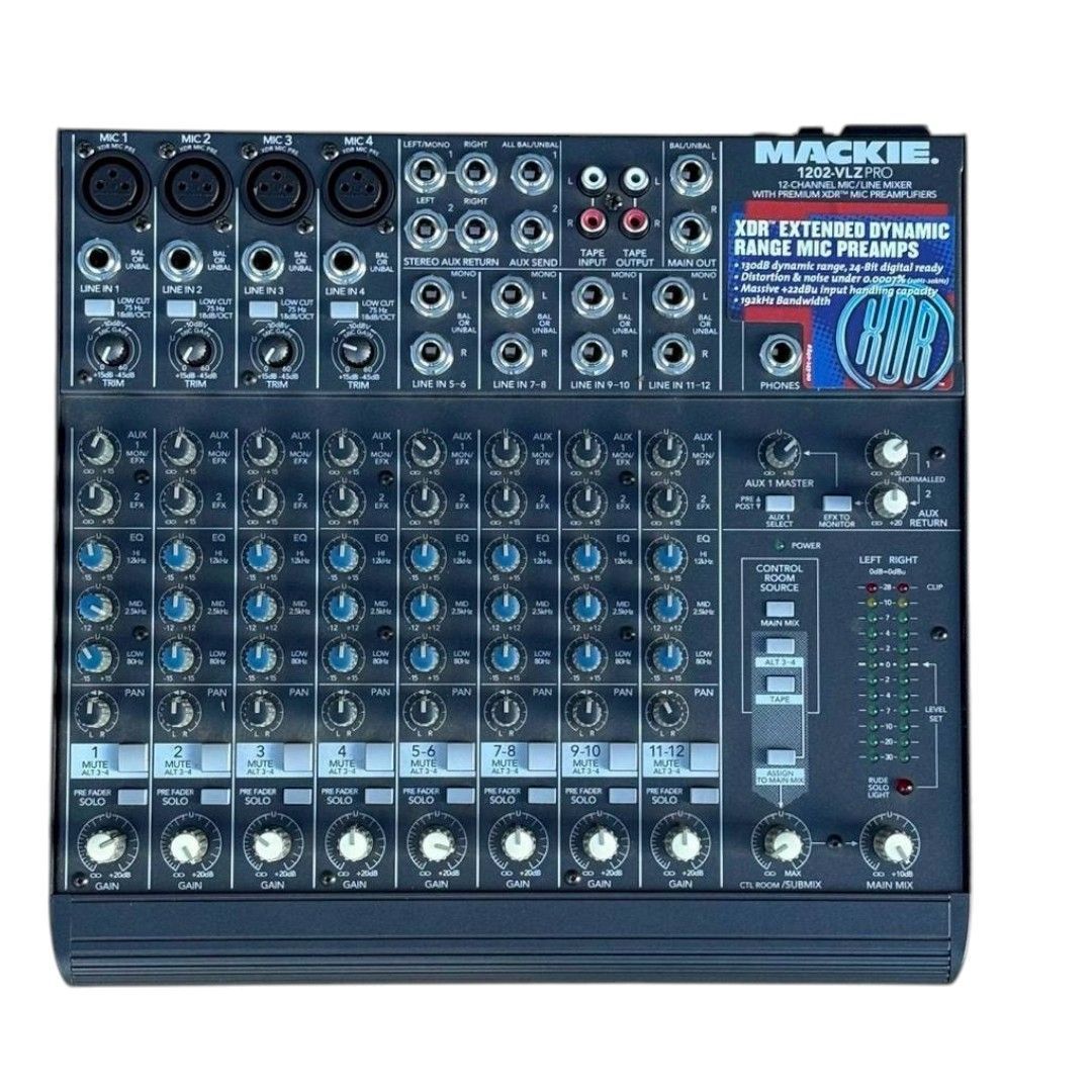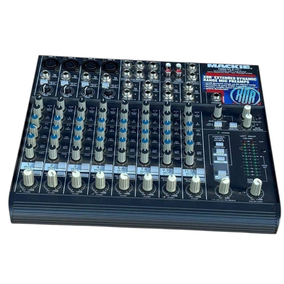 こちらは MACKIE 1202-VLZ PRO アナログミキサー です。クリーンでノイズの少ない高品位サウンドが特徴で、レコーディング・ライブ・配信など幅広いシーンで愛用されている定番の小型ミキサーとなります。