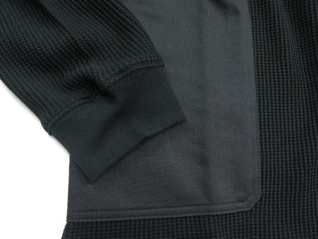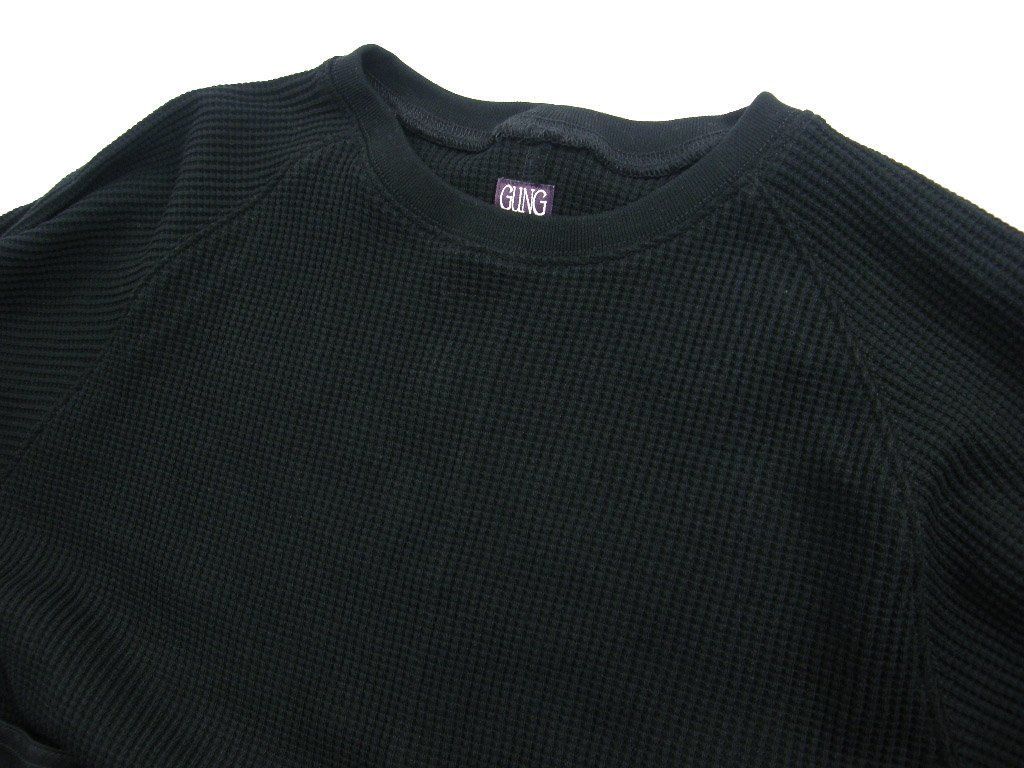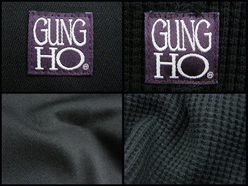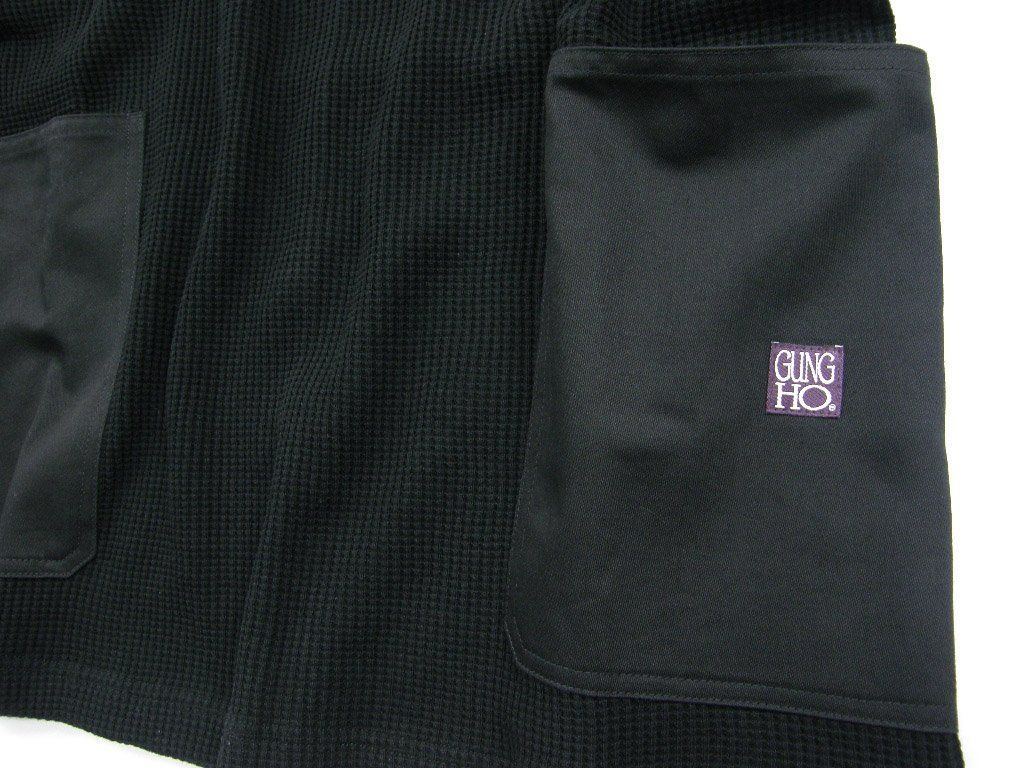 GUNG HO ガンホー ポケット付き 肉厚 ワッフル ロンT ヘビーオンス アメリカンコットン サーマル カットソー ブラック 黒 ミリタリー ワーク アウトドア キャンプ | 秋冬