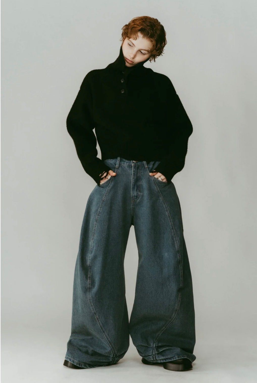 コンパクトなトップスを合わせればシルエットが際立つ。